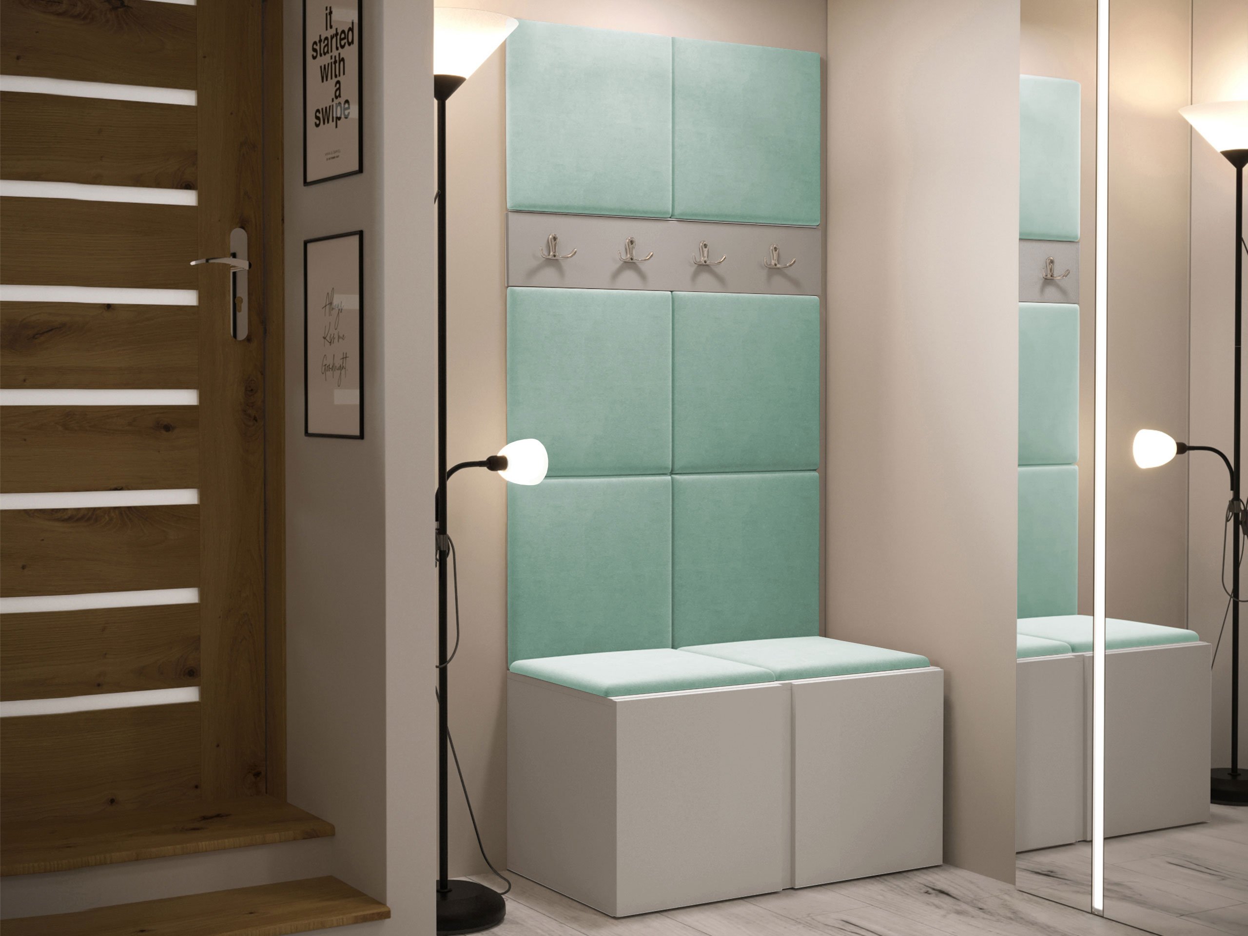 Panneau mural souple - un choix élégant et fonctionnel pour votre maison. Grâce à sa surface surélevée, le panneau crée un effet 3D unique. Ces panneaux souples apporteront du confort et de l'intimité, tout en constituant un élément décoratif. Grâce à leurs propriétés uniques, ils absorbent le son. Les panneaux peuvent être utilisés comme élément décoratif dans une pièce en étant séparée ou pour recouvrir entierement un mur. Le panneau est constitué d'une plaque de 8 mm d'épaisseur qui facilite le montage mural. La douceur et la forme sont assurées par un tissu synthétique de 3 cm d'épaisseur et le matériau qui le recouvre. Vous pouvez choisir un tissu du panneau dans une large gamme de couleurs, ainsi vous êtes sûr de trouver celui qui convient le mieux à votre décoration intérieur.