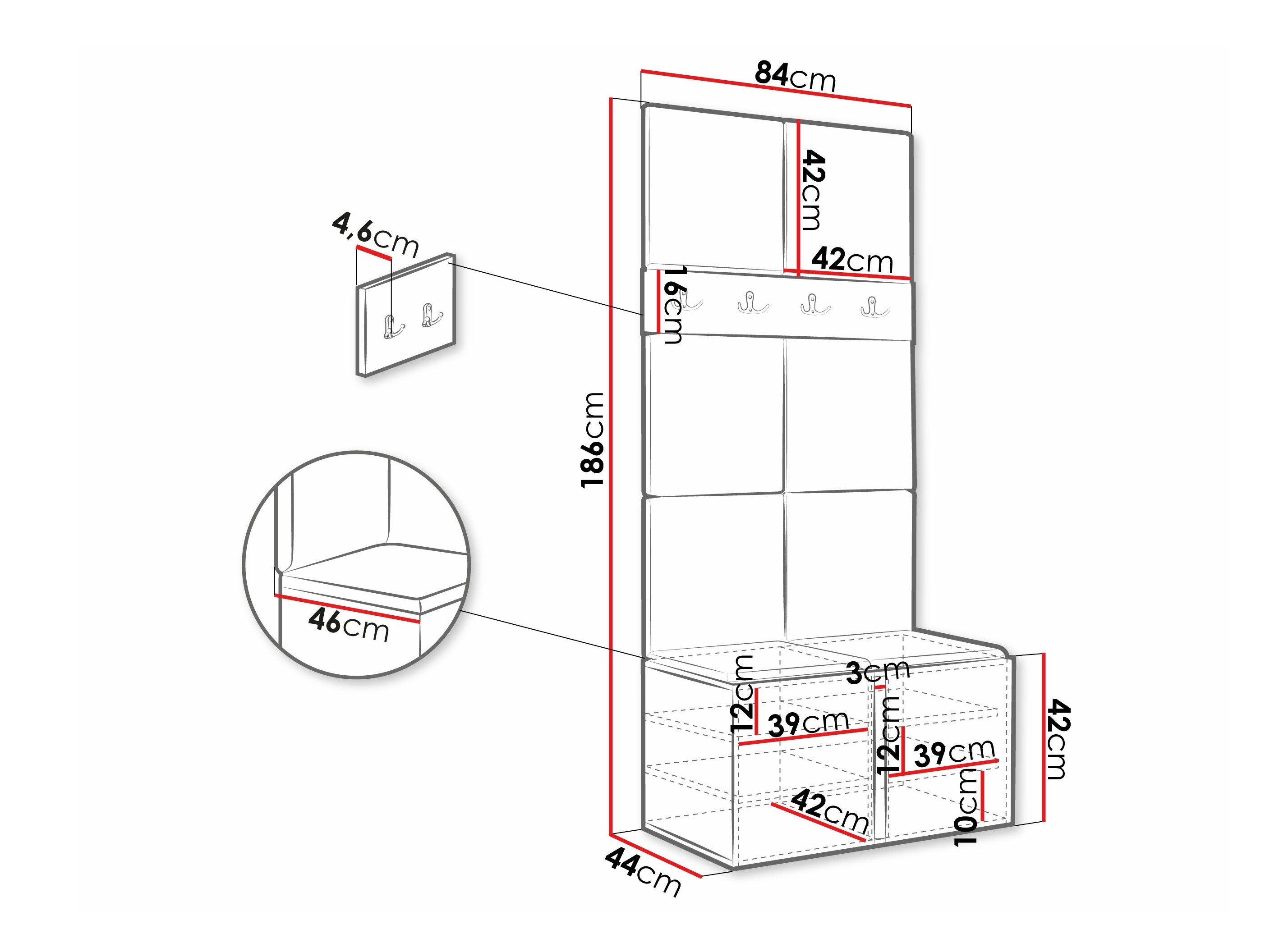 186 cm  42 cm  46 cm
