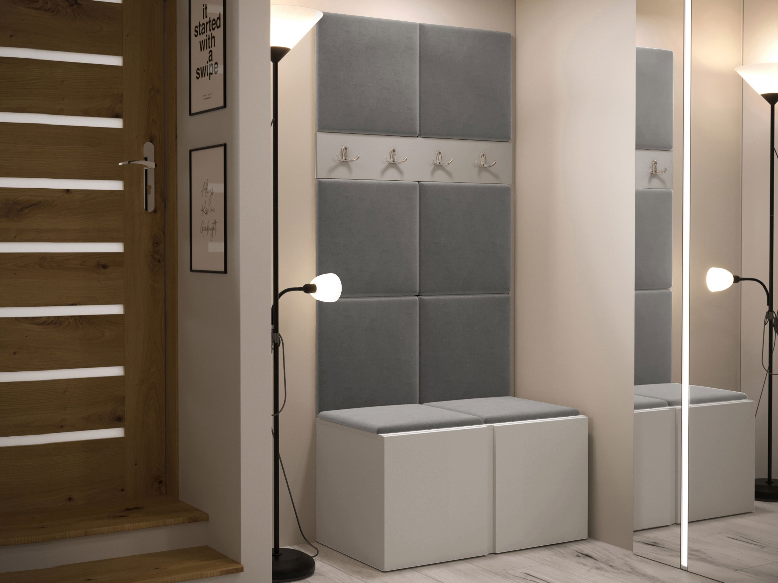 Panneau mural souple - un choix élégant et fonctionnel pour votre maison. Grâce à sa surface surélevée, le panneau crée un effet 3D unique. Ces panneaux souples apporteront du confort et de l'intimité, tout en constituant un élément décoratif. Grâce à leurs propriétés uniques, ils absorbent le son. Les panneaux peuvent être utilisés comme élément décoratif dans une pièce en étant séparée ou pour recouvrir entierement un mur. Le panneau est constitué d'une plaque de 8 mm d'épaisseur qui facilite le montage mural. La douceur et la forme sont assurées par un tissu synthétique de 3 cm d'épaisseur et le matériau qui le recouvre. Vous pouvez choisir un tissu du panneau dans une large gamme de couleurs, ainsi vous êtes sûr de trouver celui qui convient le mieux à votre décoration intérieur.