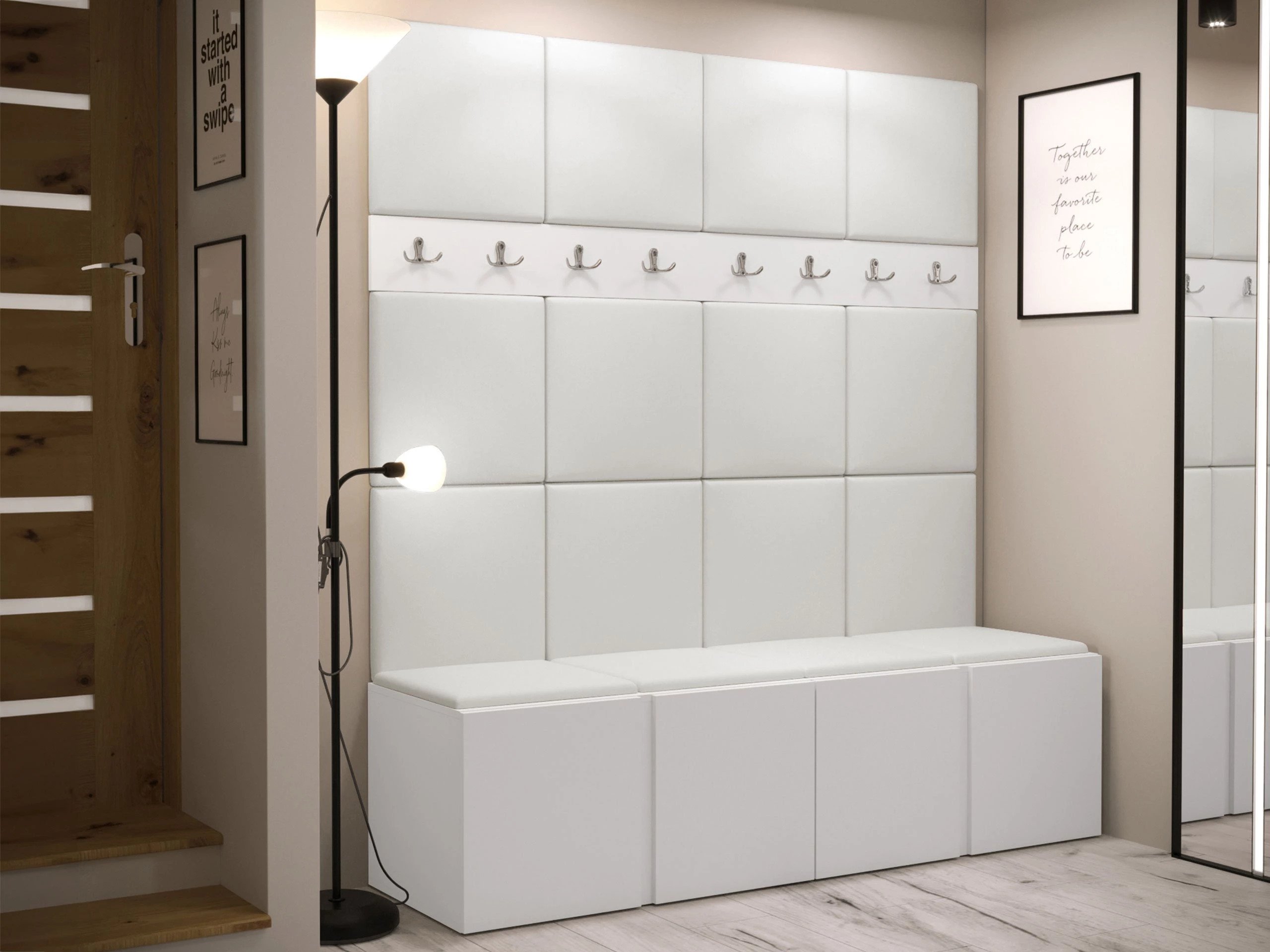 Panneau mural souple - un choix élégant et fonctionnel pour votre maison. Grâce à sa surface surélevée, le panneau crée un effet 3D unique. Ces panneaux souples apporteront du confort et de l'intimité, tout en constituant un élément décoratif. Grâce à leurs propriétés uniques, ils absorbent le son. Les panneaux peuvent être utilisés comme élément décoratif dans une pièce en étant séparée ou pour recouvrir entierement un mur. Le panneau est constitué d'une plaque de 8 mm d'épaisseur qui facilite le montage mural. La douceur et la forme sont assurées par un tissu synthétique de 3 cm d'épaisseur et le matériau qui le recouvre. Vous pouvez choisir un tissu du panneau dans une large gamme de couleurs, ainsi vous êtes sûr de trouver celui qui convient le mieux à votre décoration intérieur.