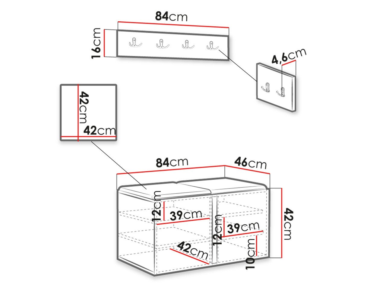 Dimensions du meuble à chaussures: