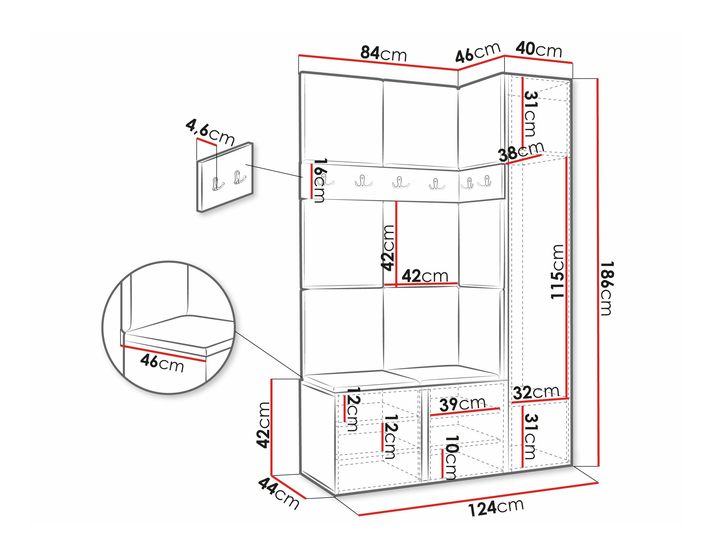 Dimensions du portemanteau: