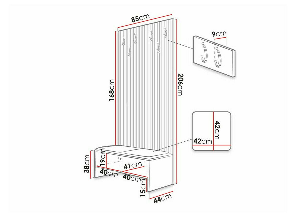 206 cm  85 cm  44 cm
