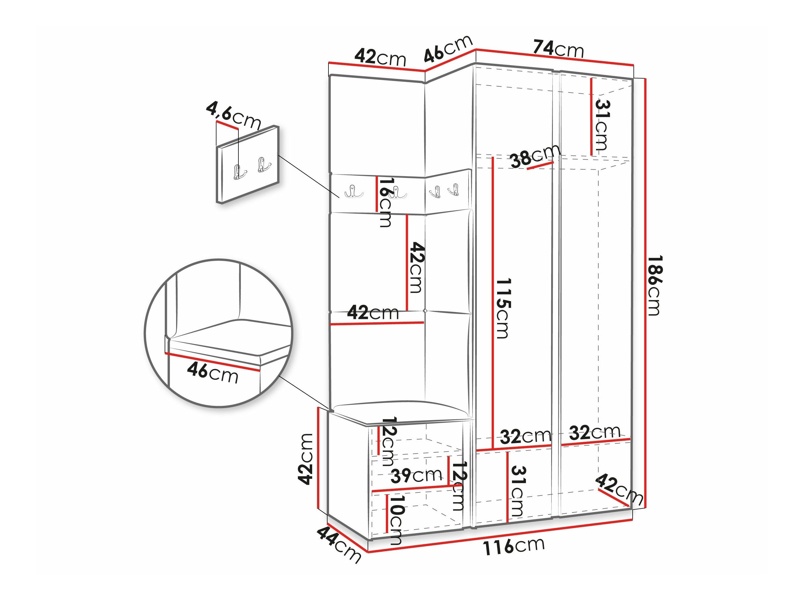 186 x 74 x 46 cm