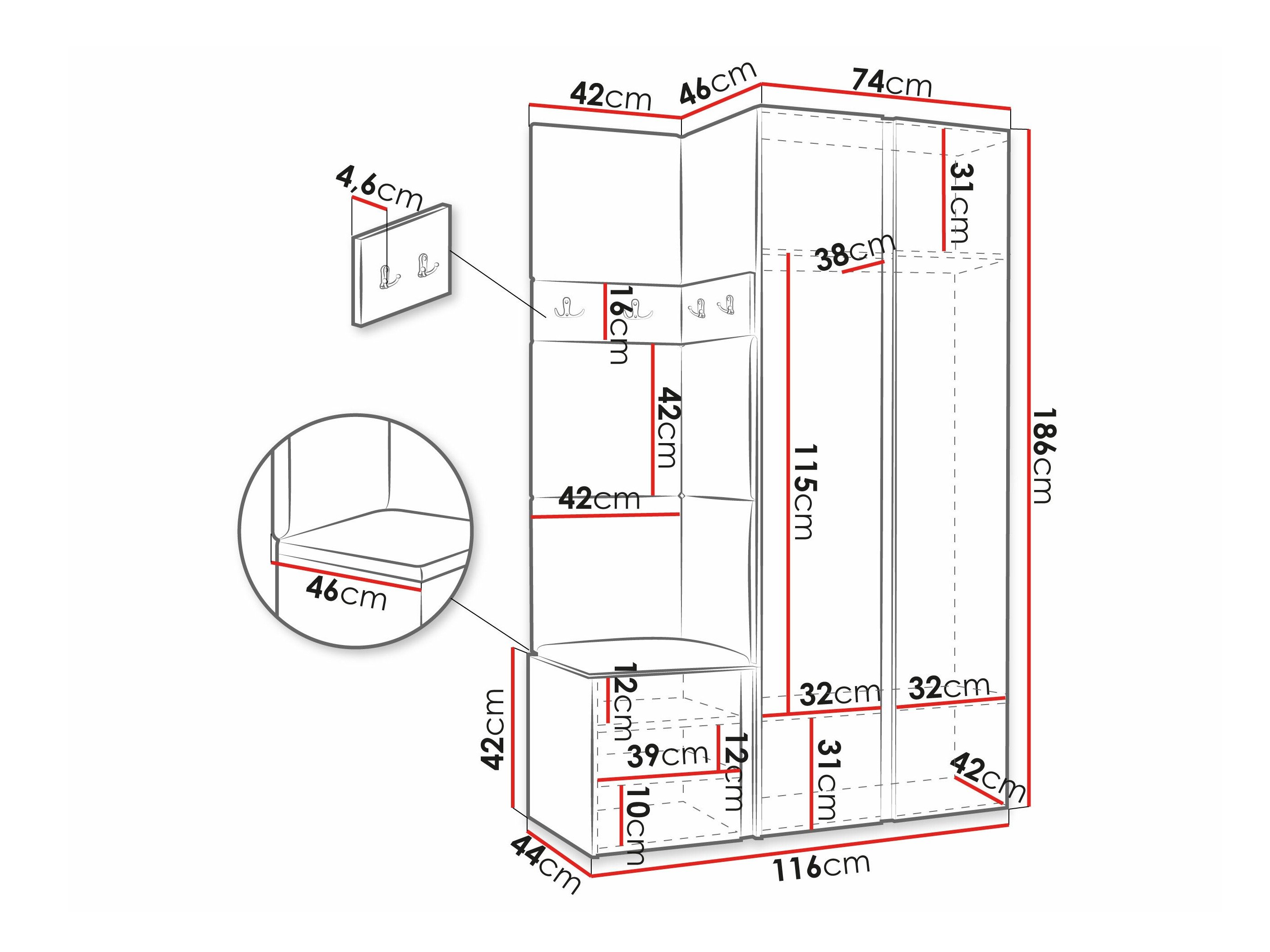 186 x 74 x 46 cm