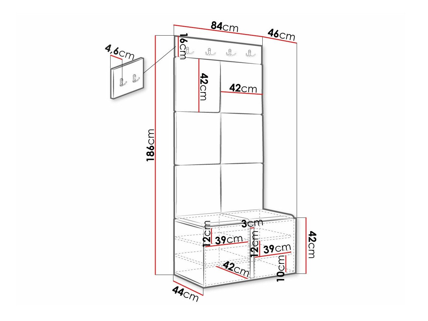 Dimensions du meuble à chaussures:
