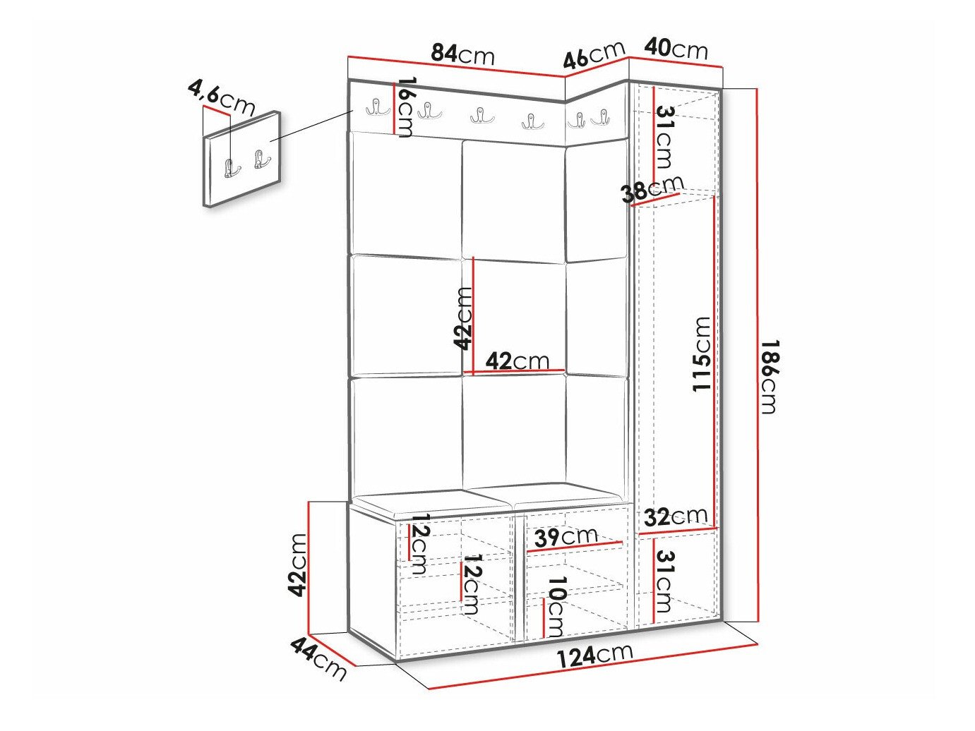 Dimensions du portemanteau: