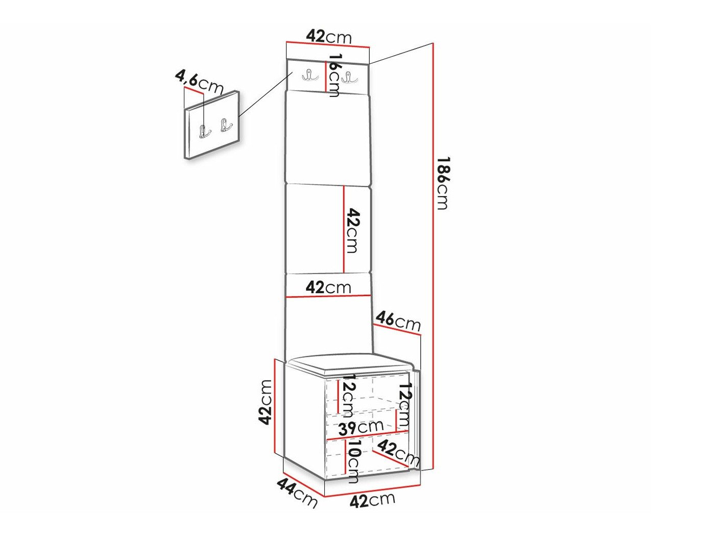 186 cm  42 cm  46 cm