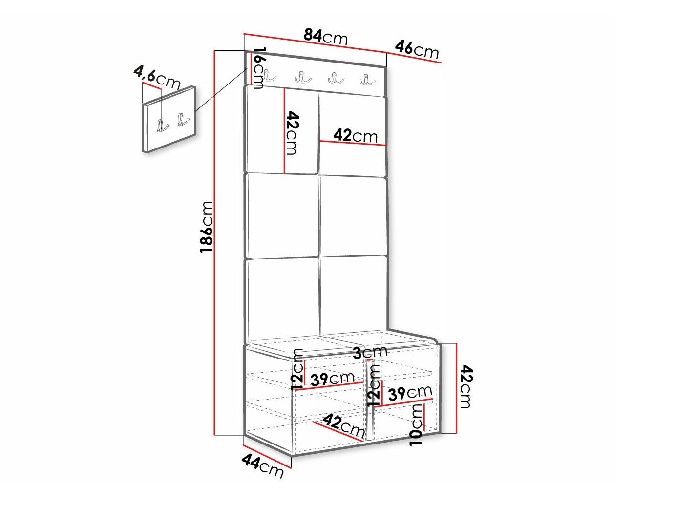 Dimensions du meuble à chaussures: