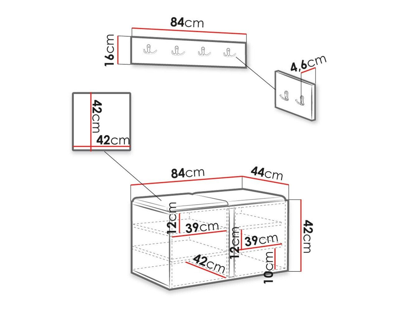 Dimensions du meuble à chaussures: