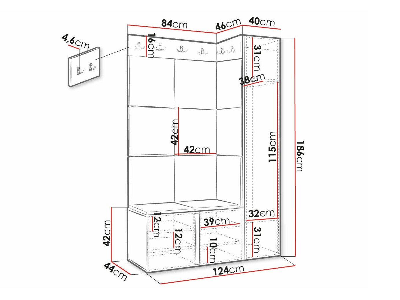 Dimensions du portemanteau: