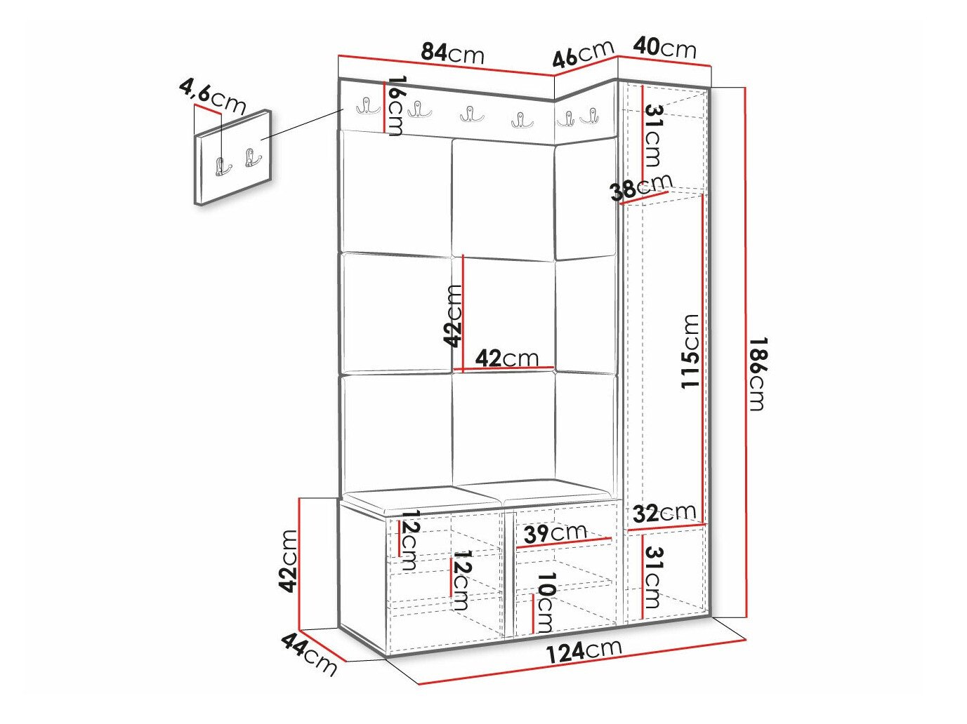 Dimensions du portemanteau: