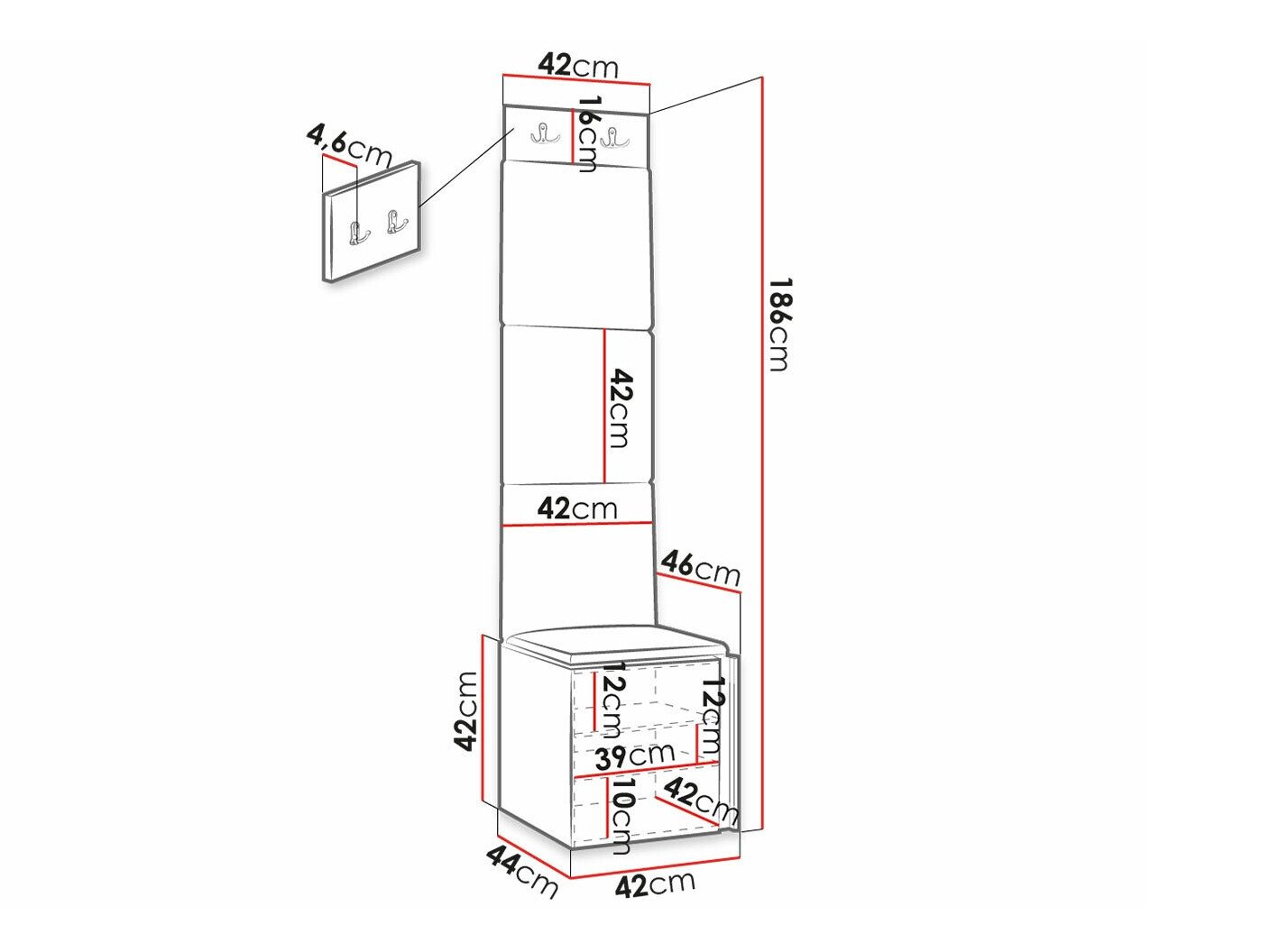 186 cm  42 cm  46 cm