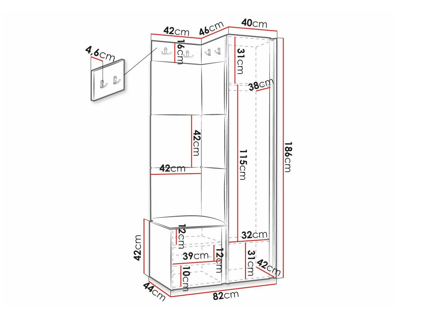 Dimensions du portemanteau: