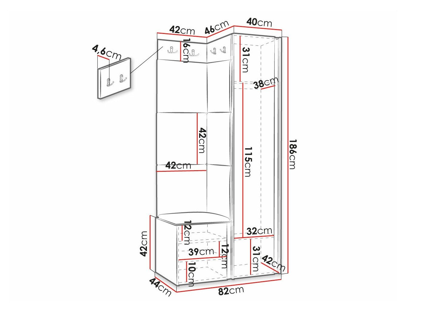 Dimensions du portemanteau: