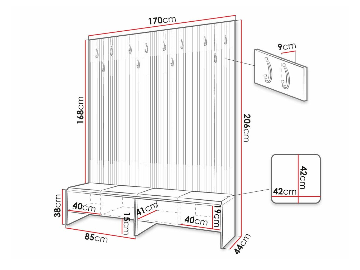 206 cm  170 cm  44 cm
