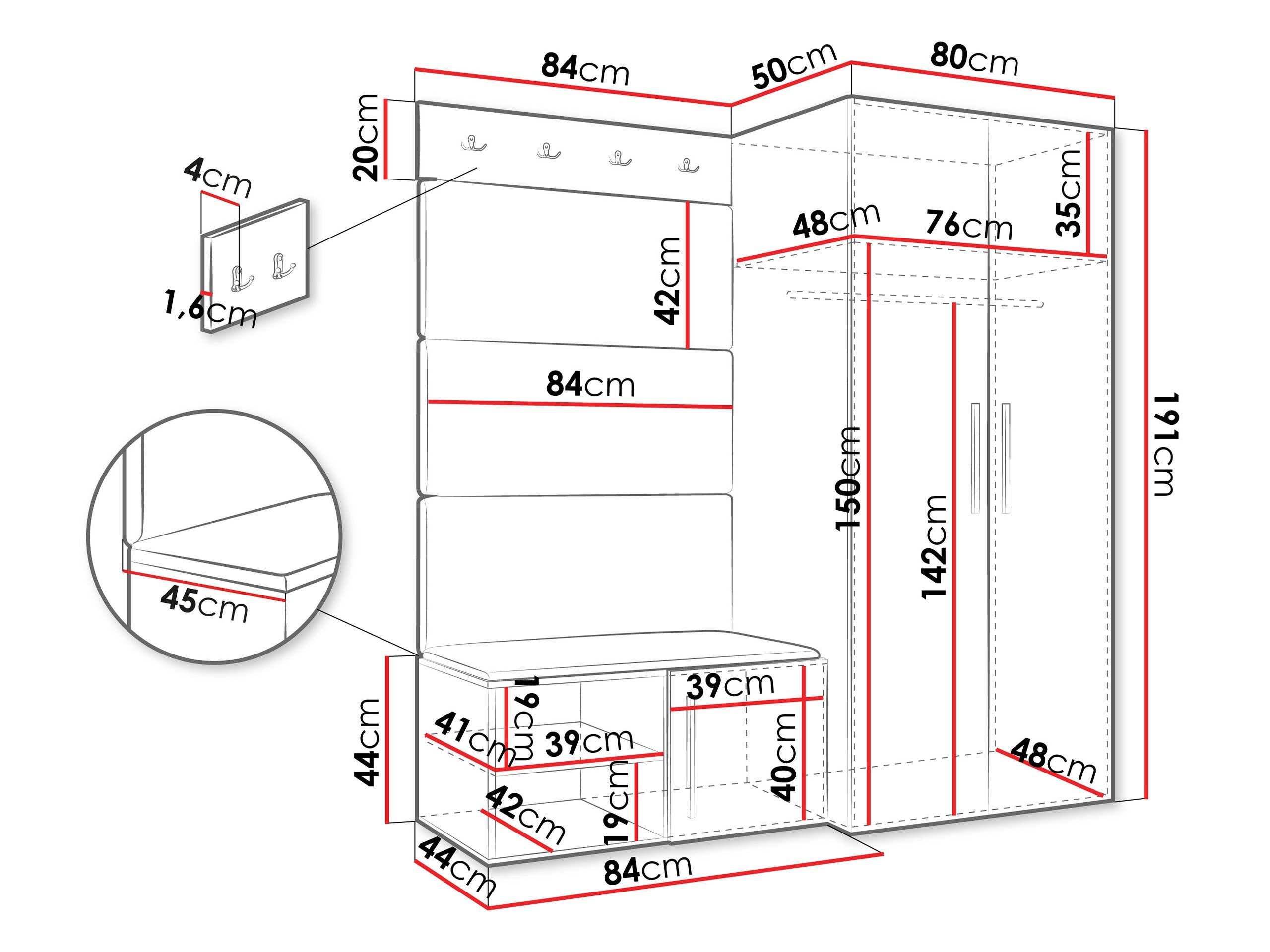 Dimensions du meuble à chaussures: