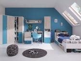 Lors de l'aménagement d'une chambre pour un enfant ou un jeune, il faut s'assurer que le mobilier est aussi fonctionnel qu'il répond aux attentes du jeune. C'est exactement ce que vous trouverez dans la collection de meubles pour l'espace chambre des jeunes. Si la collection devait être décrite en quelques mots, ce serait: moderne et pratique. La disposition des armoires et des tiroirs est encore renforcée par la palette de couleurs. Si vous envisagez toujours les couleurs que vous voulez dans la pièce, les deux combinaisons de couleurs vous aideront à prendre une décision plus rapidement. La combinaison du blanc, du chêne et du turquoise vous conviendra pour créer un intérieur lumineux et ludique complété par une touche turquoise. La combinaison du noir, du chêne et du beige crée un design à la fois contrasté et élégant. Les façades des meubles sont complétées par de petites poignées métalliques. De nombreux compartiments vous aideront à rester organisé et à accueillir tous vos objets les plus importants. Dans la collection, vous trouverez un placard d'angle très spacieux, un bureau, un lit, une étagère et plus encore. Les meubles de la collection sont conçus et adaptés pour un jeune. Il ne reste qu'une étape vers la chambre de rêve: choisissez la combinaison de couleurs la plus populaire.