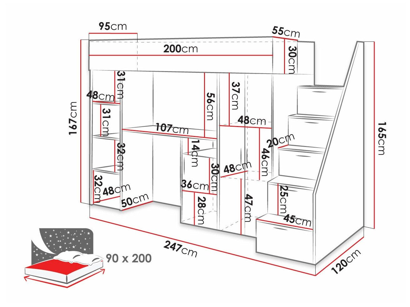 165 cm  125 cm  247 cm