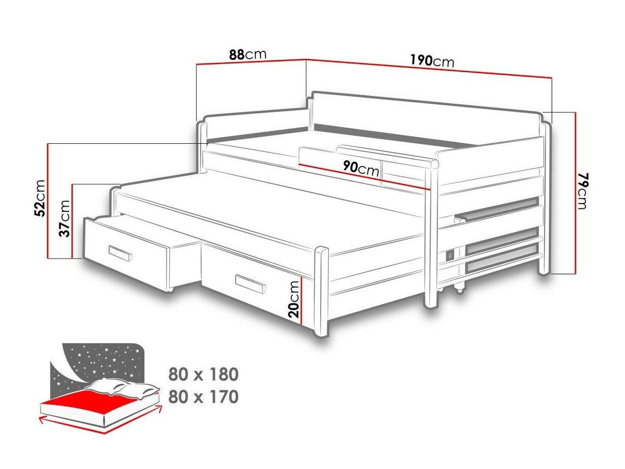 - 80 x 170 cm