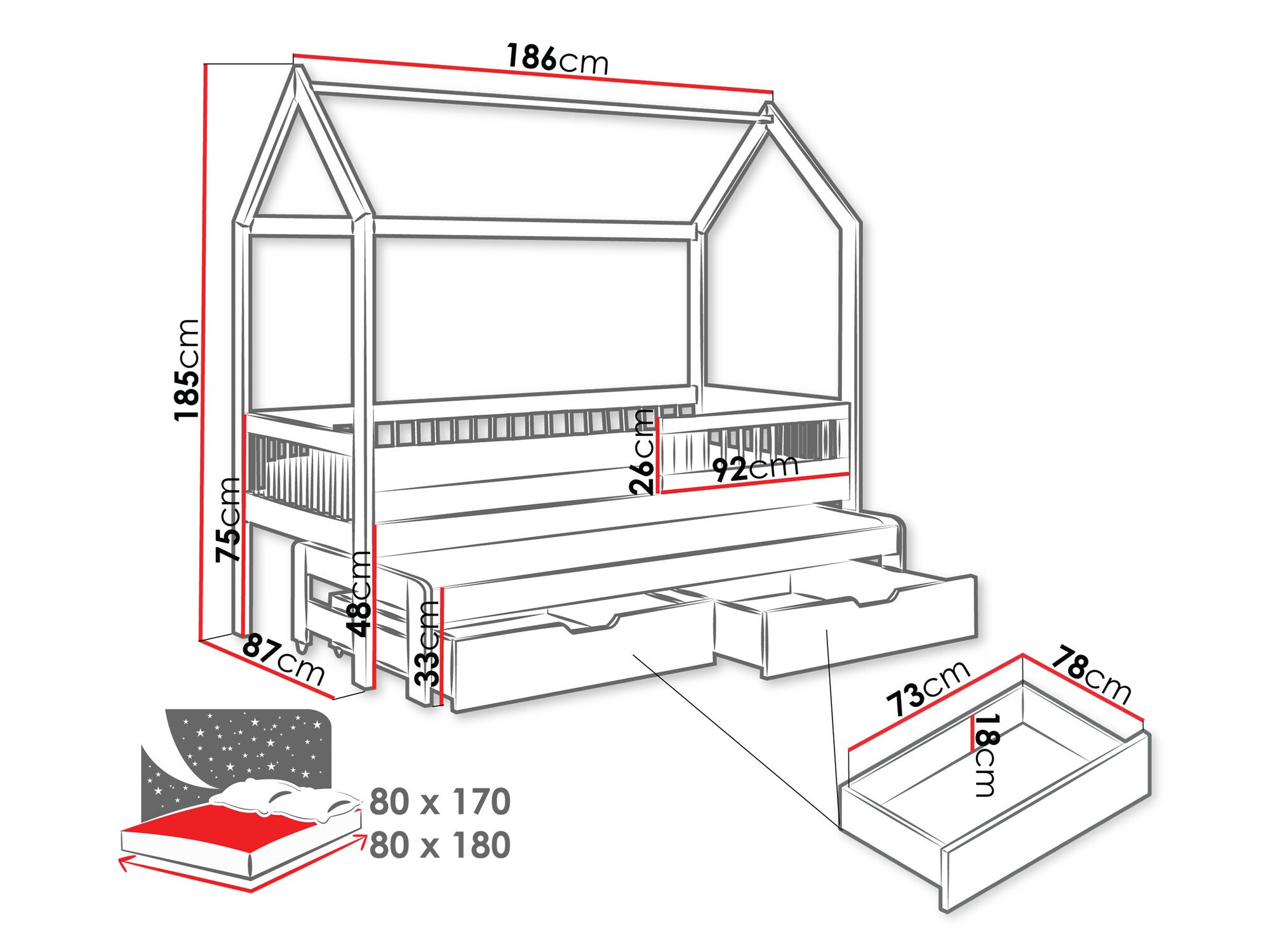 - 80 x 170 cm