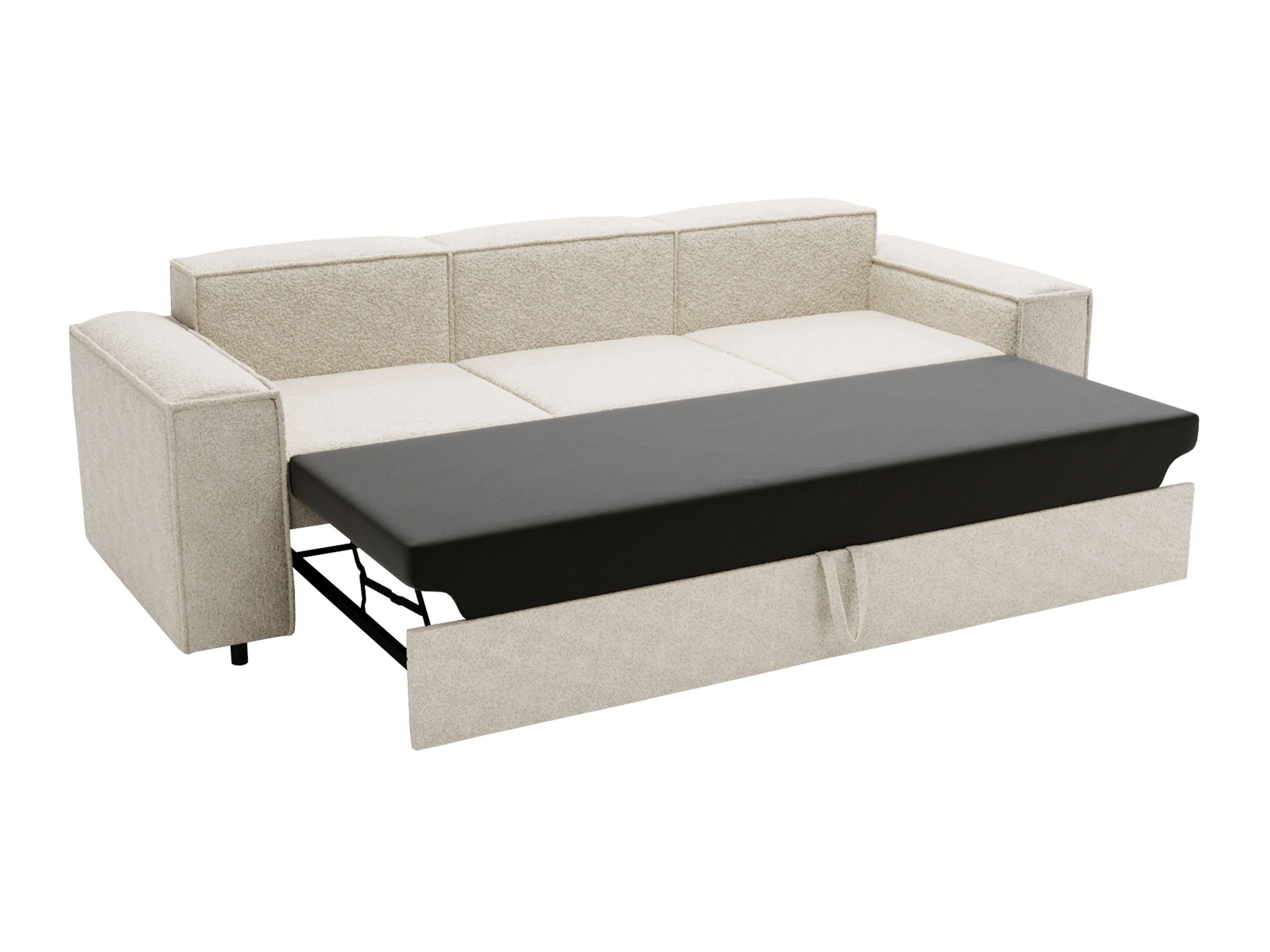 Le mécanisme de couchage à tirroir, aussi appelé "dauphin" est une solution simple et pratique qui vous permettra de transformer le meuble sans trop d'effort. Le tiroir situé sous le canapé est invisible et lorsqu'il est tiré, le canapé se transforme en lit. Pour déplier le meuble, il suffit de tirer la partie inférieure vers sois et de sortir le tiroir contenant la surface de couchage supplémentaire. Utilisez la boucle pour soulever le matelas à l'intérieur. Cette zone de couchage est un peu plus rigide que normale. L'assise du canapé ne bougeant pas, les meubles dotés de ce mécanisme peuvent être placés juste à côté du mur.