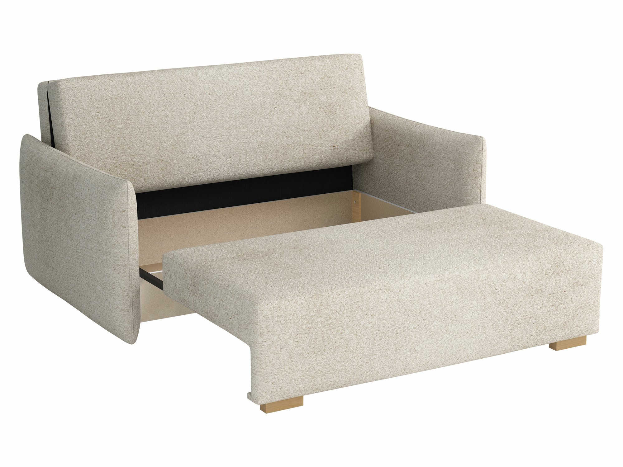 Ce mécanisme de ce meuble est unique en ce sens que la partie qui se déplace le fait sans toucher le sol, ce qui protège ce dernier d'éventuelles rayures. Il suffit de soulever le siège et de le tirer légèrement vers soi. Il suffit ensuite d'abaisser l'arrière du meuble pour préparer une place pour dormir.