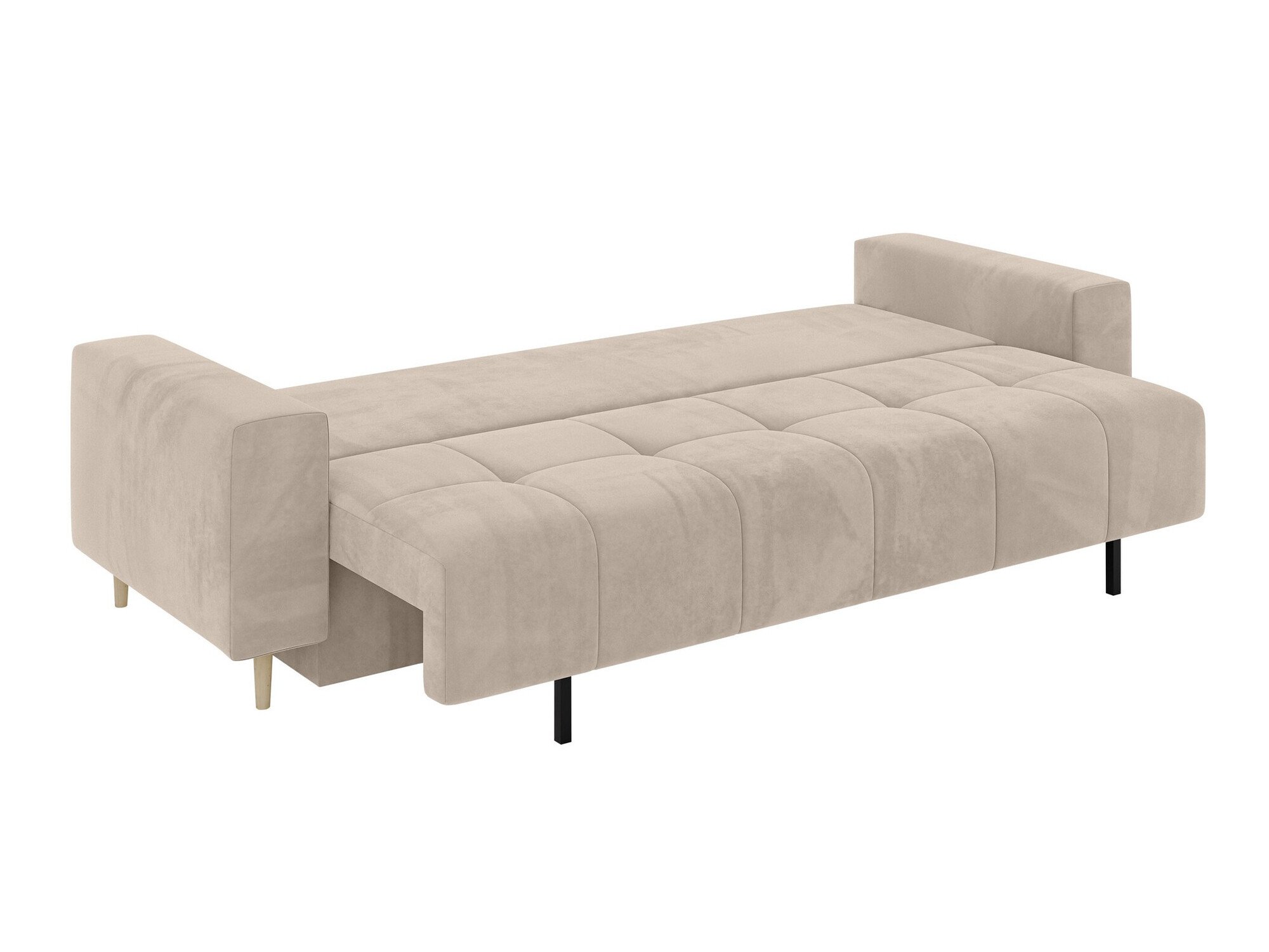 Ce mécanisme de ce meuble est unique en ce sens que la partie qui se déplace le fait sans toucher le sol, ce qui protège ce dernier d'éventuelles rayures. Il suffit de soulever le siège et de le tirer légèrement vers soi. Il suffit ensuite d'abaisser l'arrière du meuble pour préparer une place pour dormir.