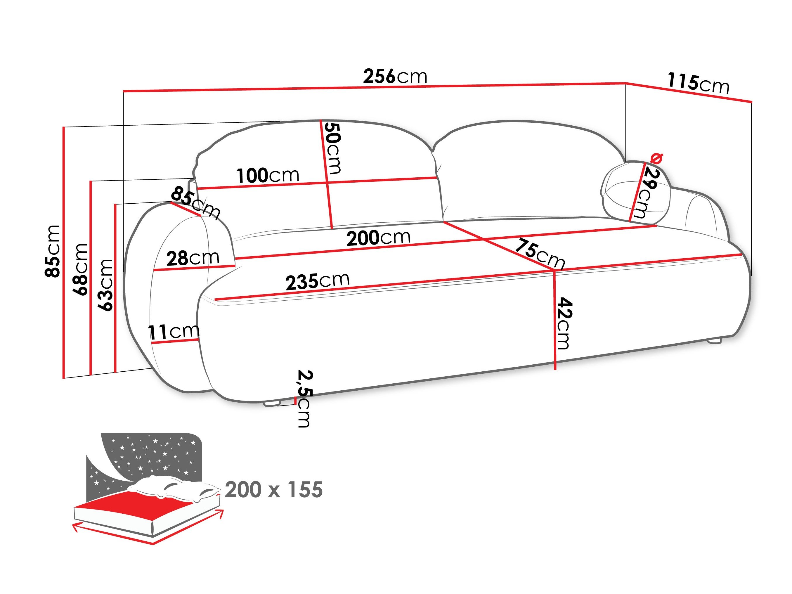 256 cm