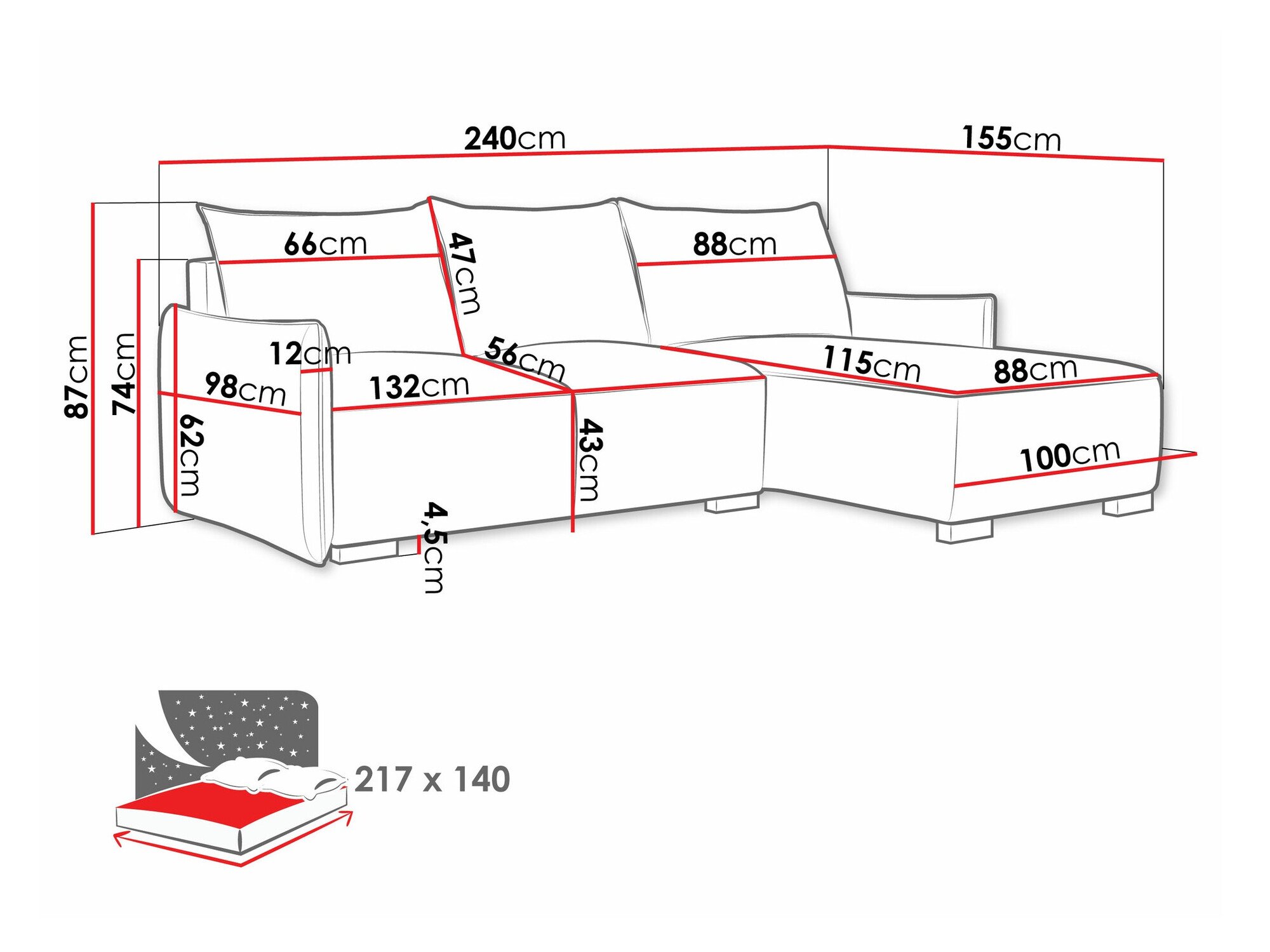 Longueur de la zone de couchage: