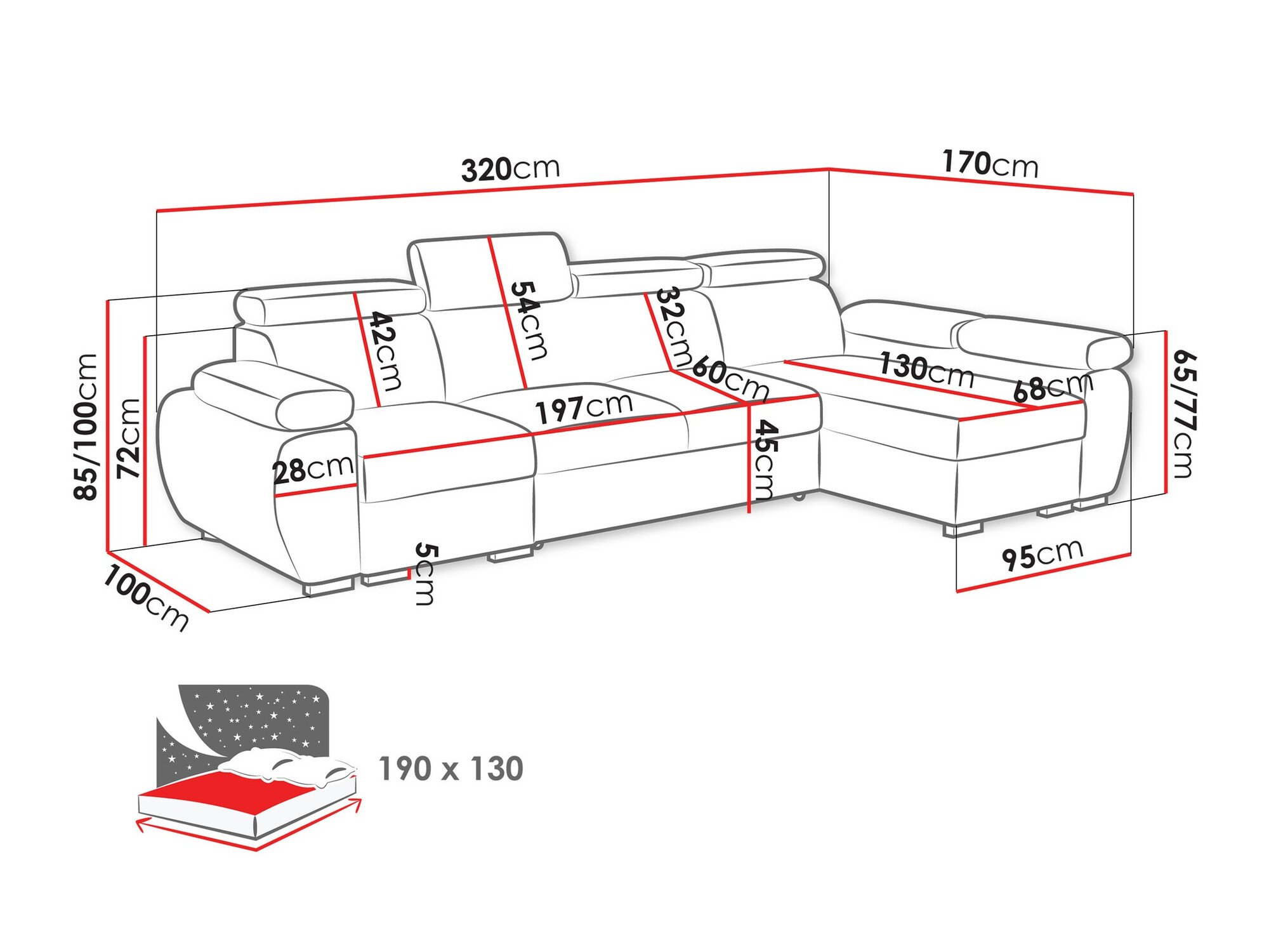 Longueur de la zone de couchage: