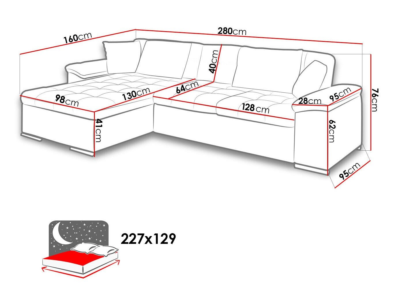 Dimensions de la boîte à literie: