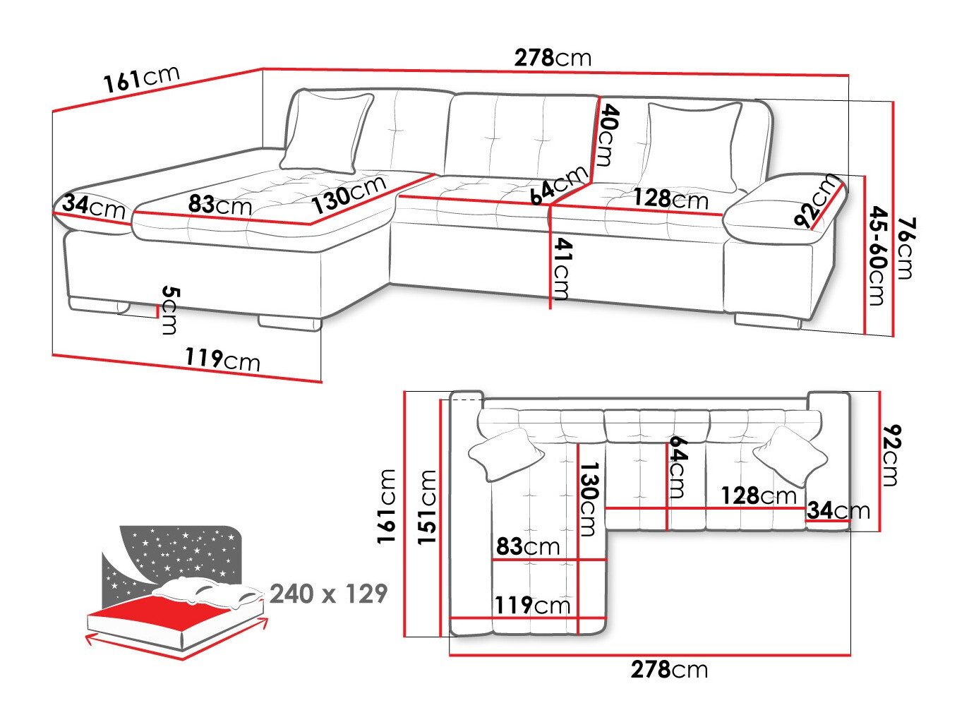 Lorsque vous êtes en face du canapé, le méridien de l'option droite se trouve à votre droite. L'option d'angle doit améliorer le passage dans la pièce et permettre le mouvement facile dans l'espace.
