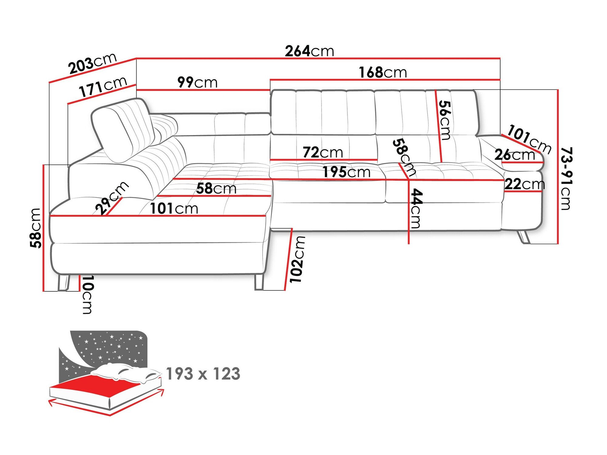 Lorsque vous êtes en face du canapé, le méridien de l'option droite se trouve à votre droite. L'option d'angle doit améliorer le passage dans la pièce et permettre le mouvement facile dans l'espace.