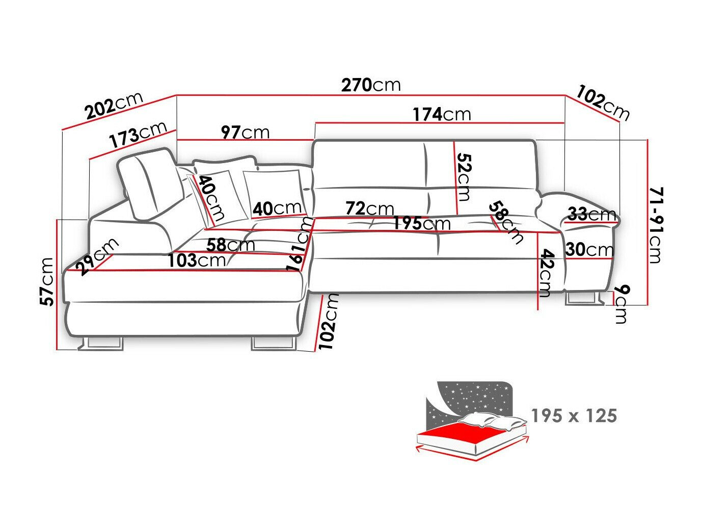 Dimensions de la boîte à literie: