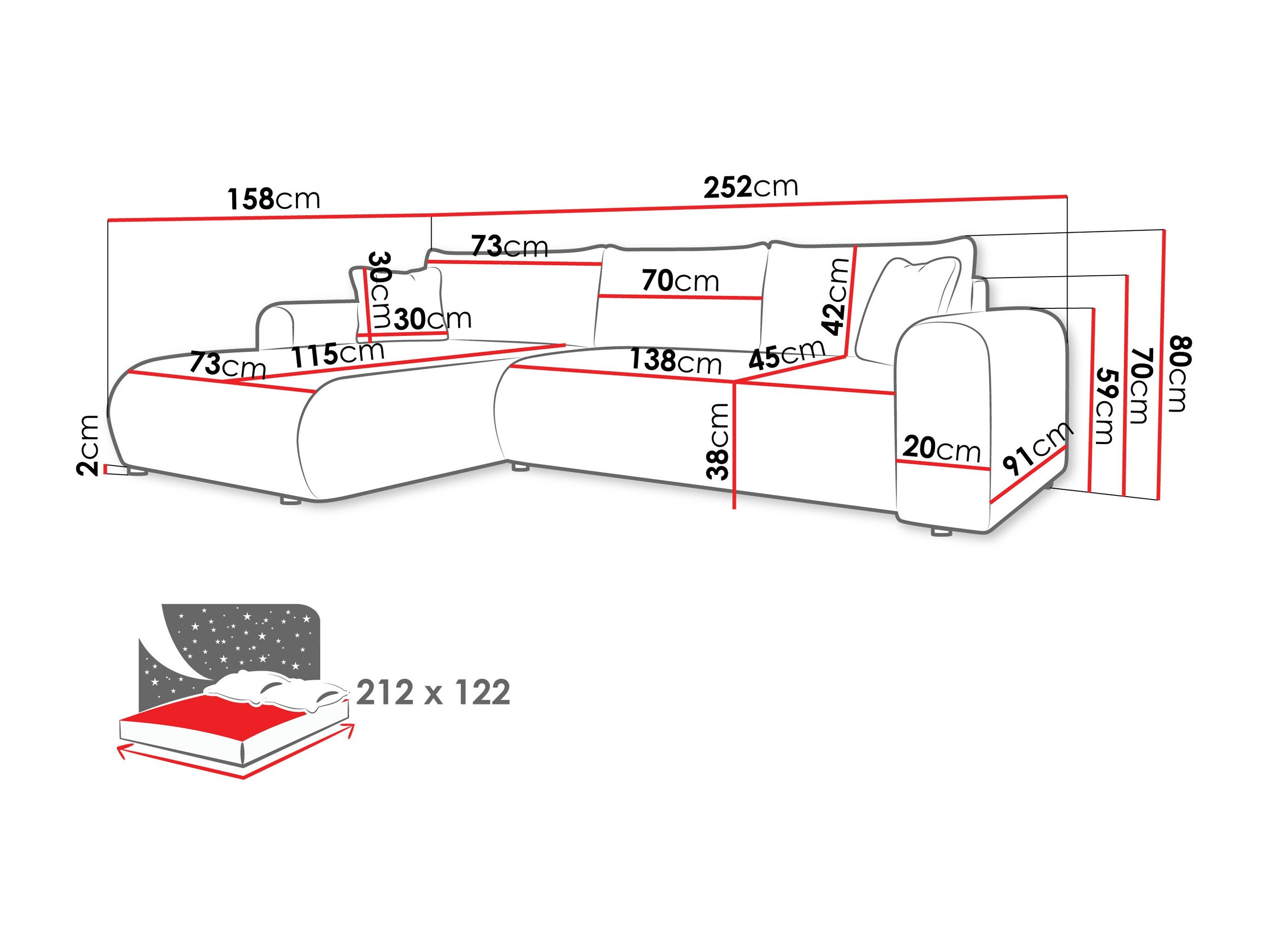 Dimensions de la boîte à literie: