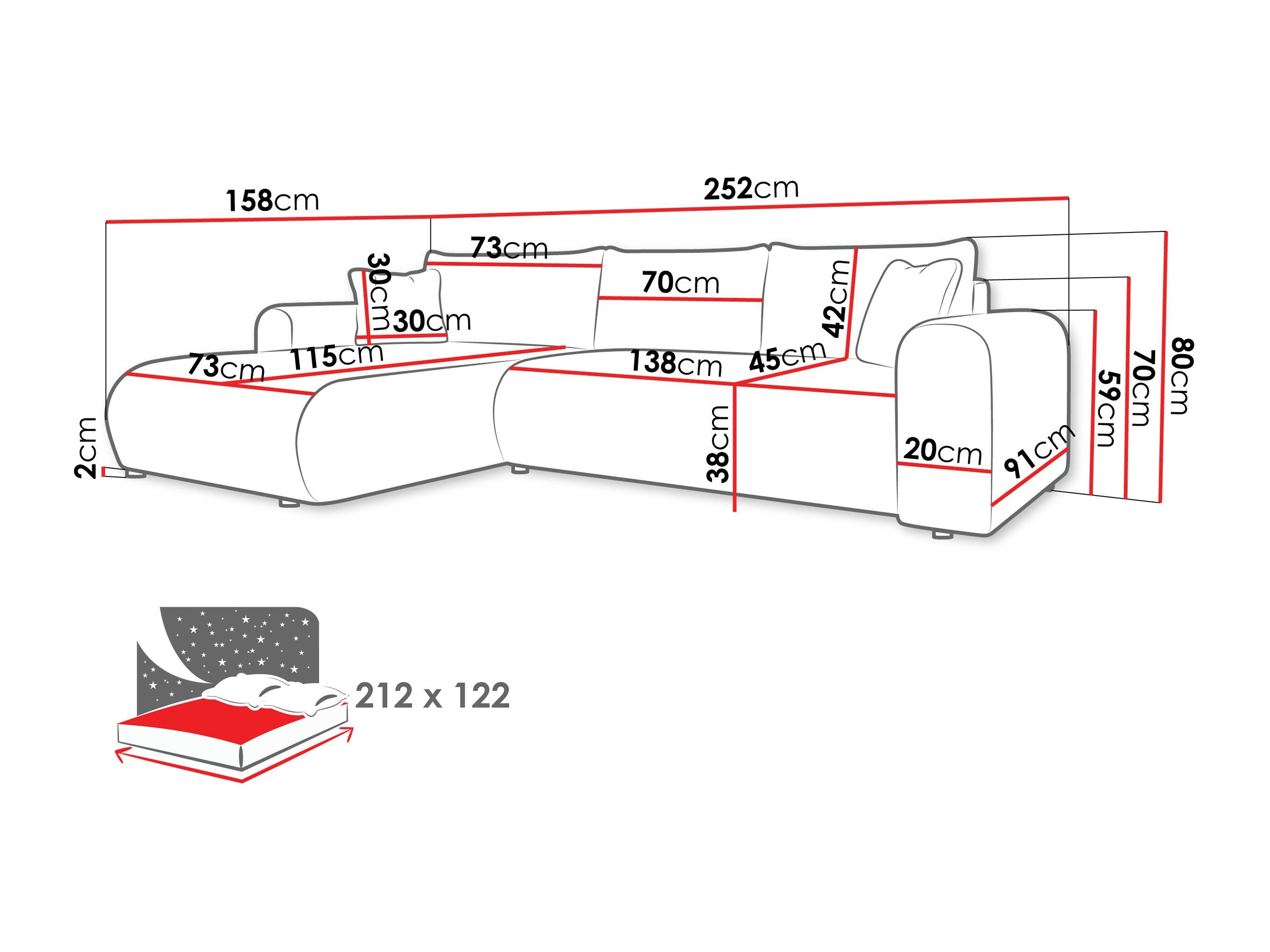 80 cm  252 cm  158 cm