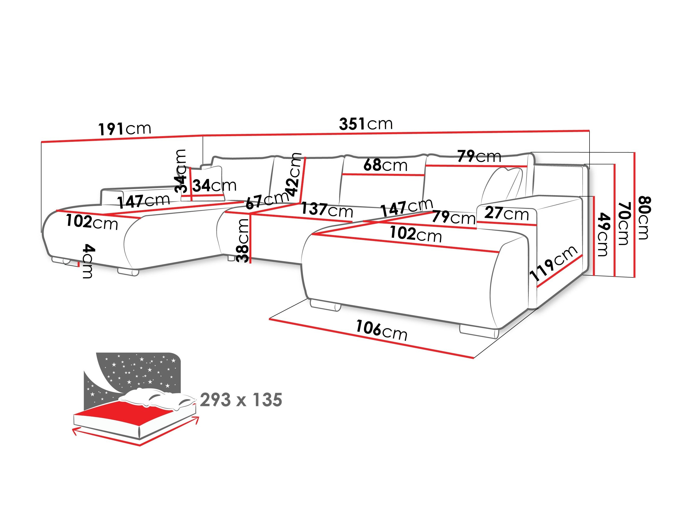 Dimensions de la boîte à literie: