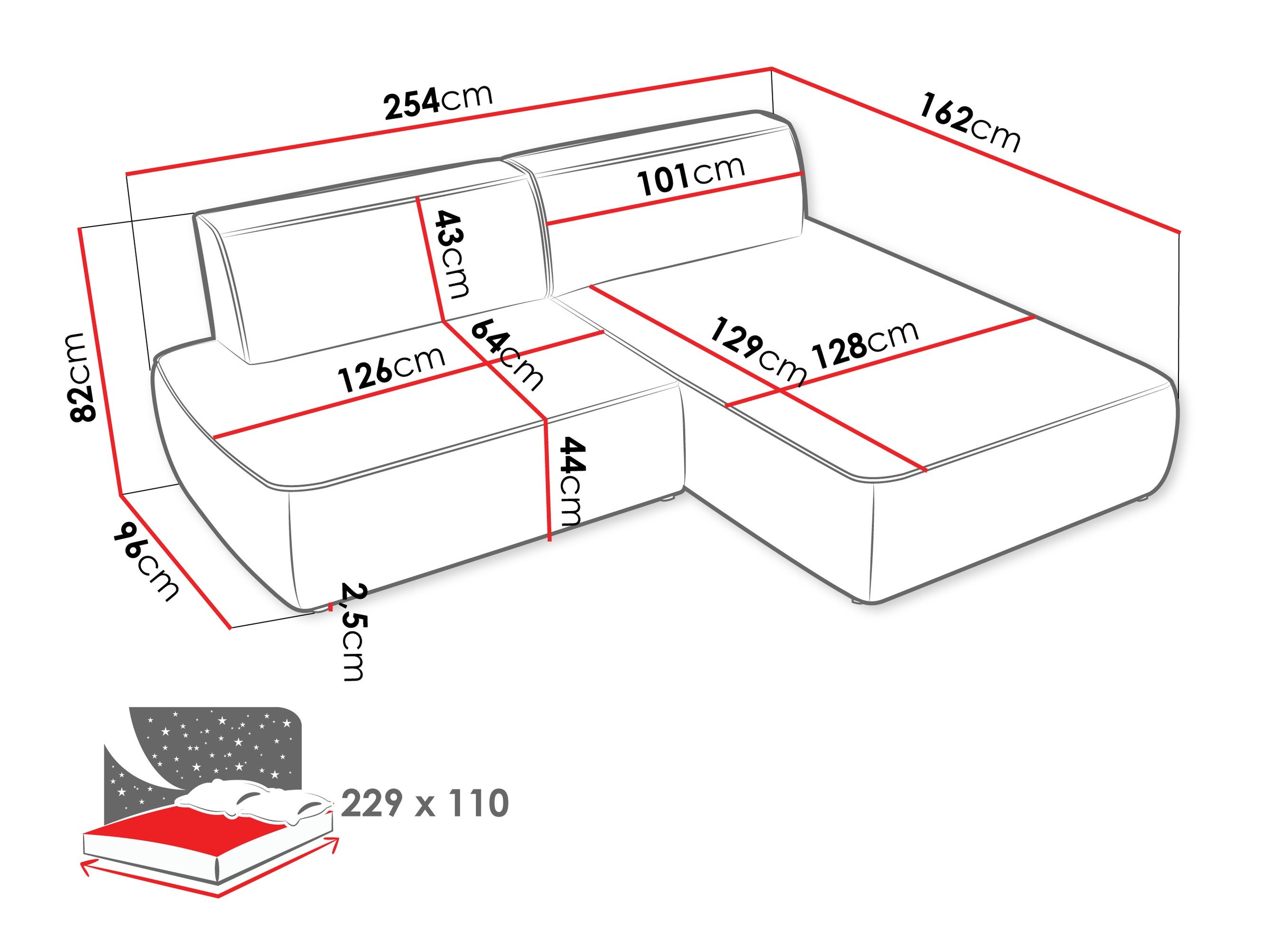 Lorsque vous êtes en face du canapé, le méridien de l'option droite se trouve à votre droite. L'option d'angle doit améliorer le passage dans la pièce et permettre le mouvement facile dans l'espace.