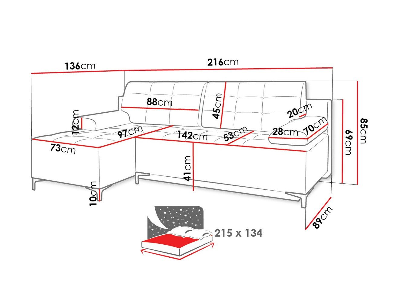 Lorsque vous êtes en face du canapé, le méridien de l'option gauche se trouve à votre gauche. L'option d'angle doit améliorer le passage dans la pièce et permettre le mouvement facile dans l'espace.