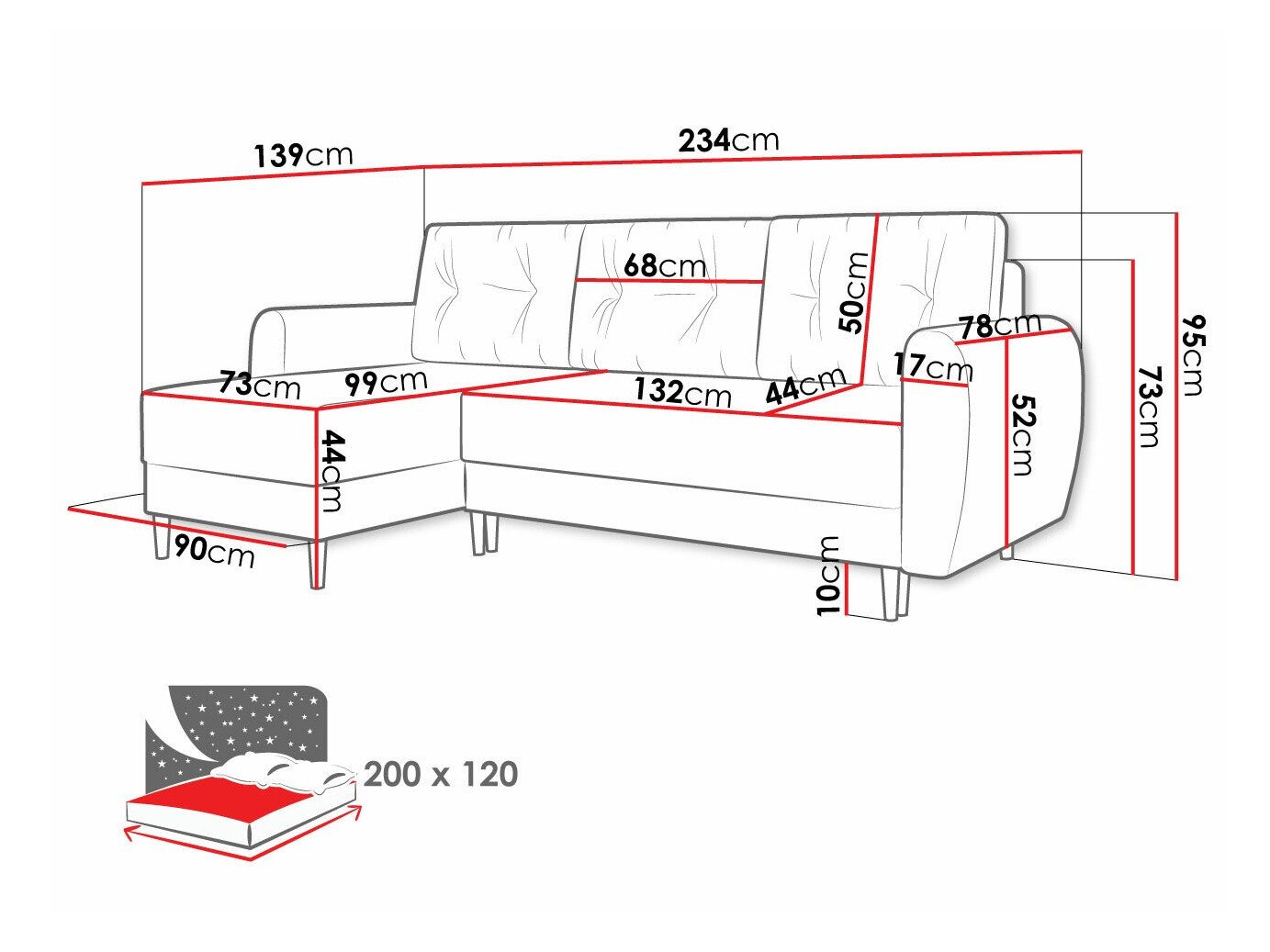 Longueur de la zone de couchage: