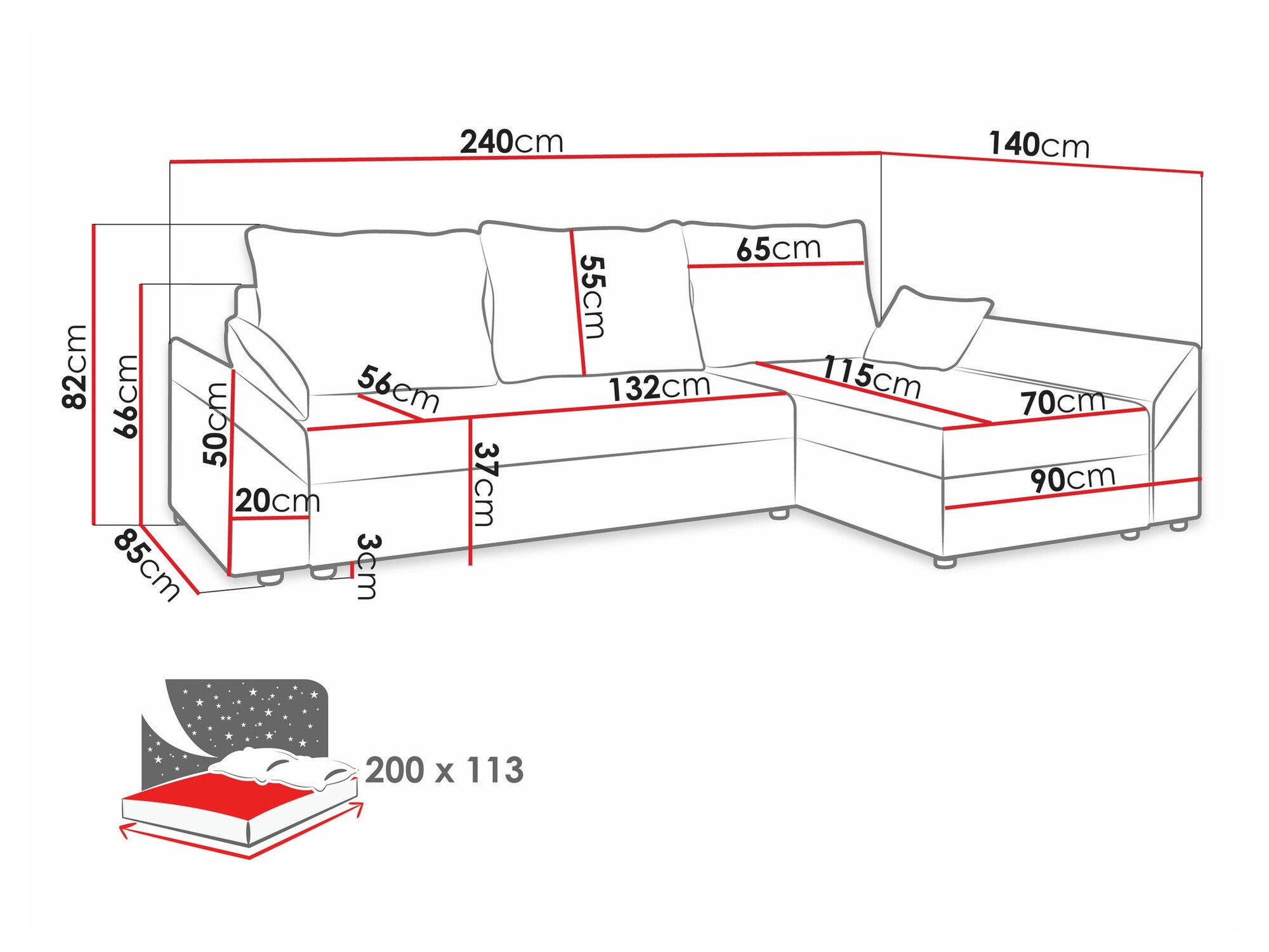 Longueur de la zone de couchage: