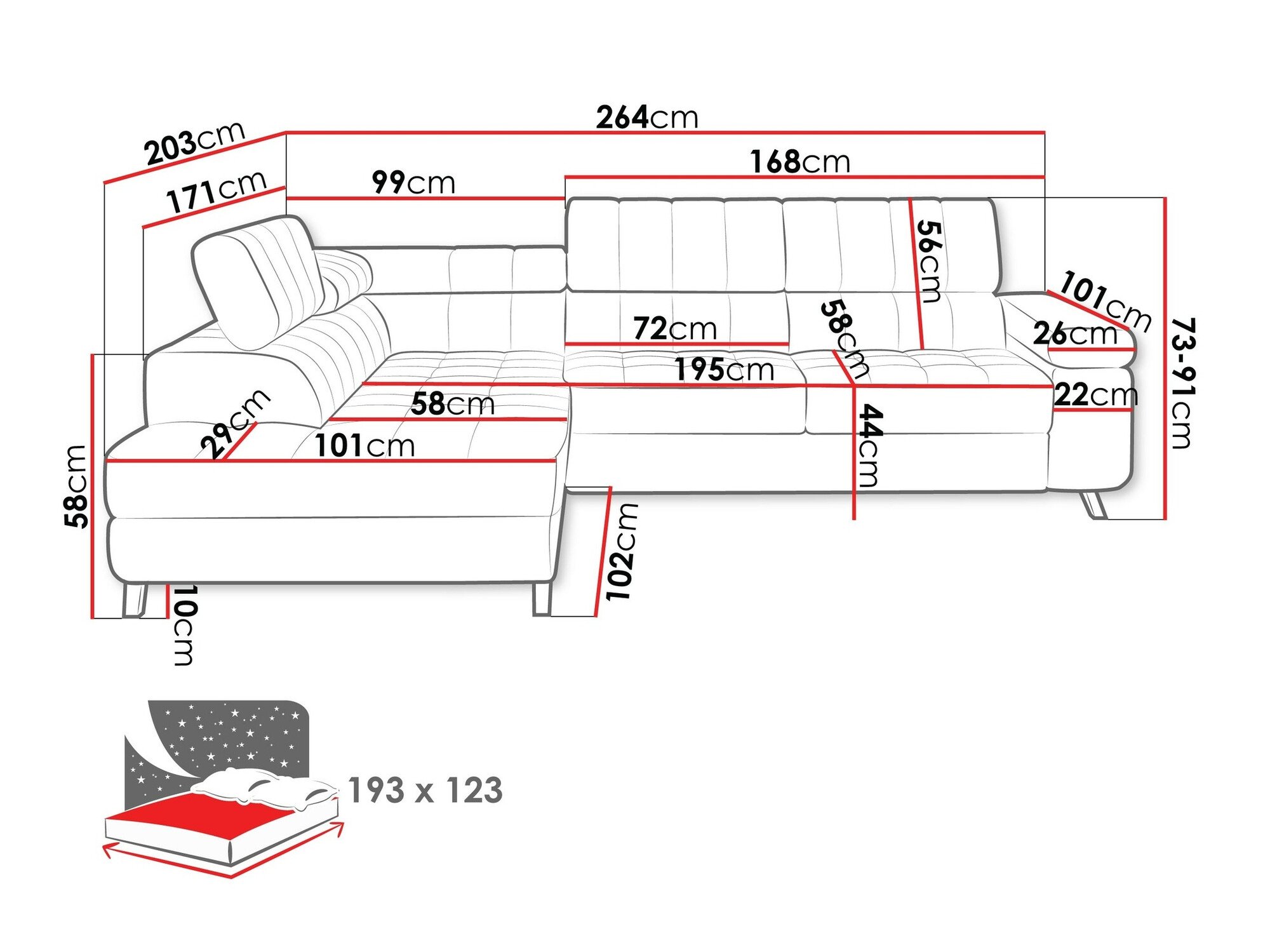 Dimensions de la boîte à literie: