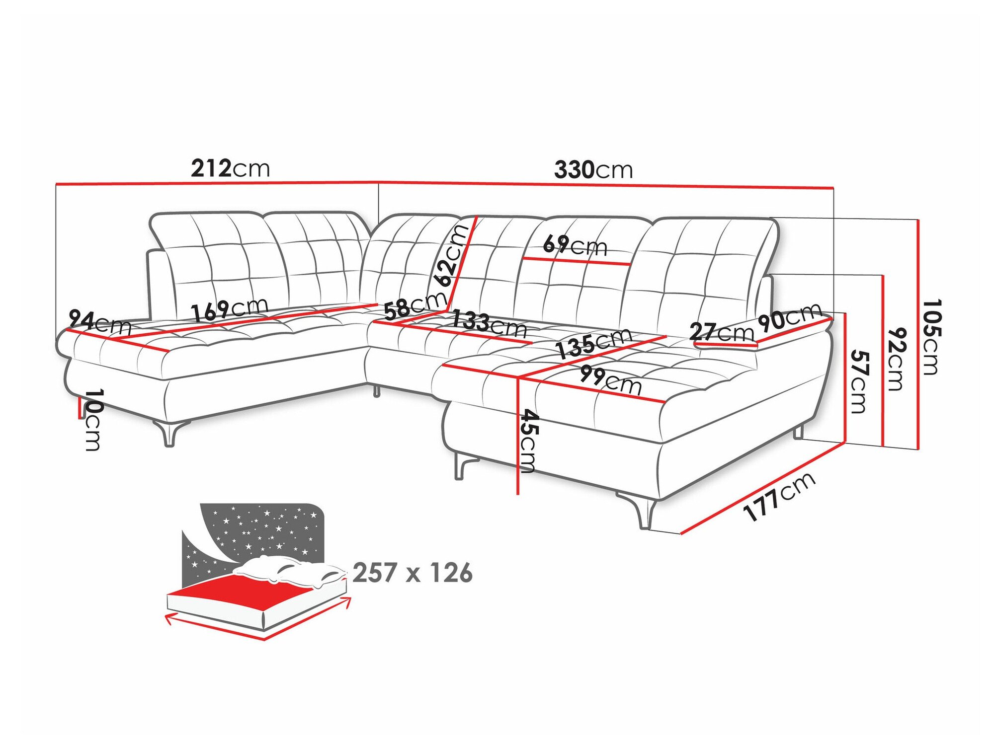 Longueur de la zone de couchage: