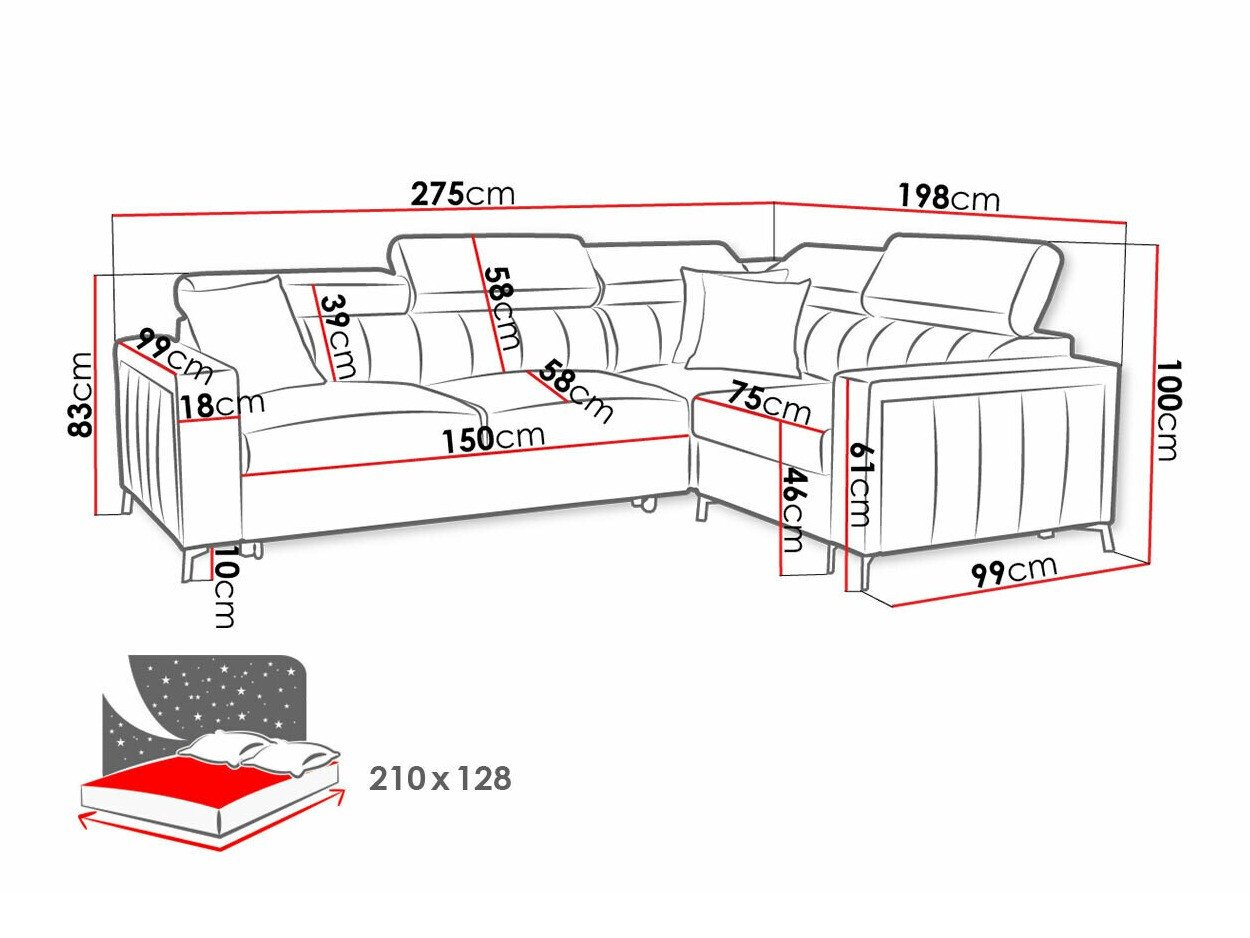 Lorsque vous êtes en face du canapé, le méridien de l'option gauche se trouve à votre gauche. L'option d'angle doit améliorer le passage dans la pièce et permettre le mouvement facile dans l'espace.