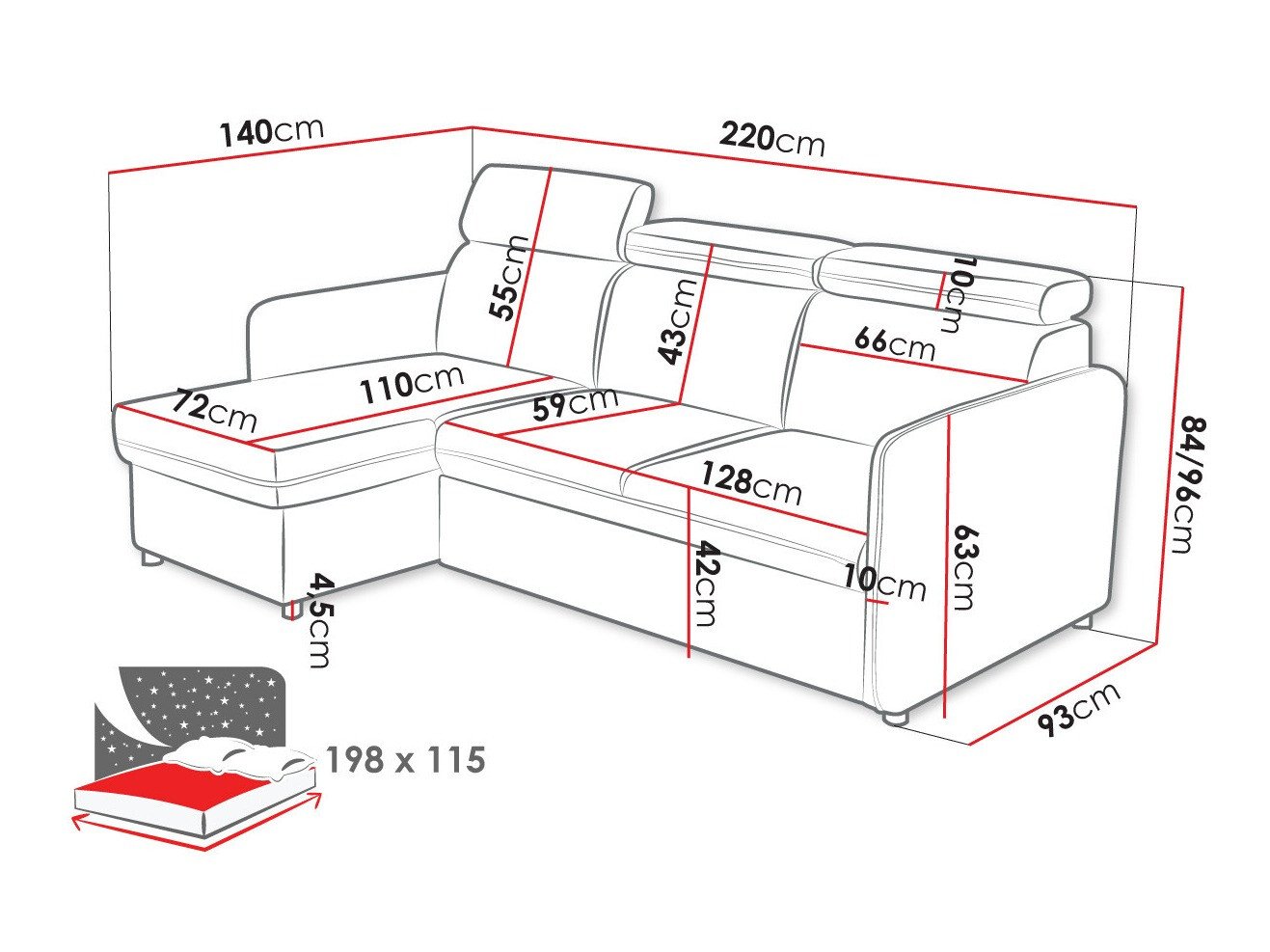 84 cm  220 cm  140 cm