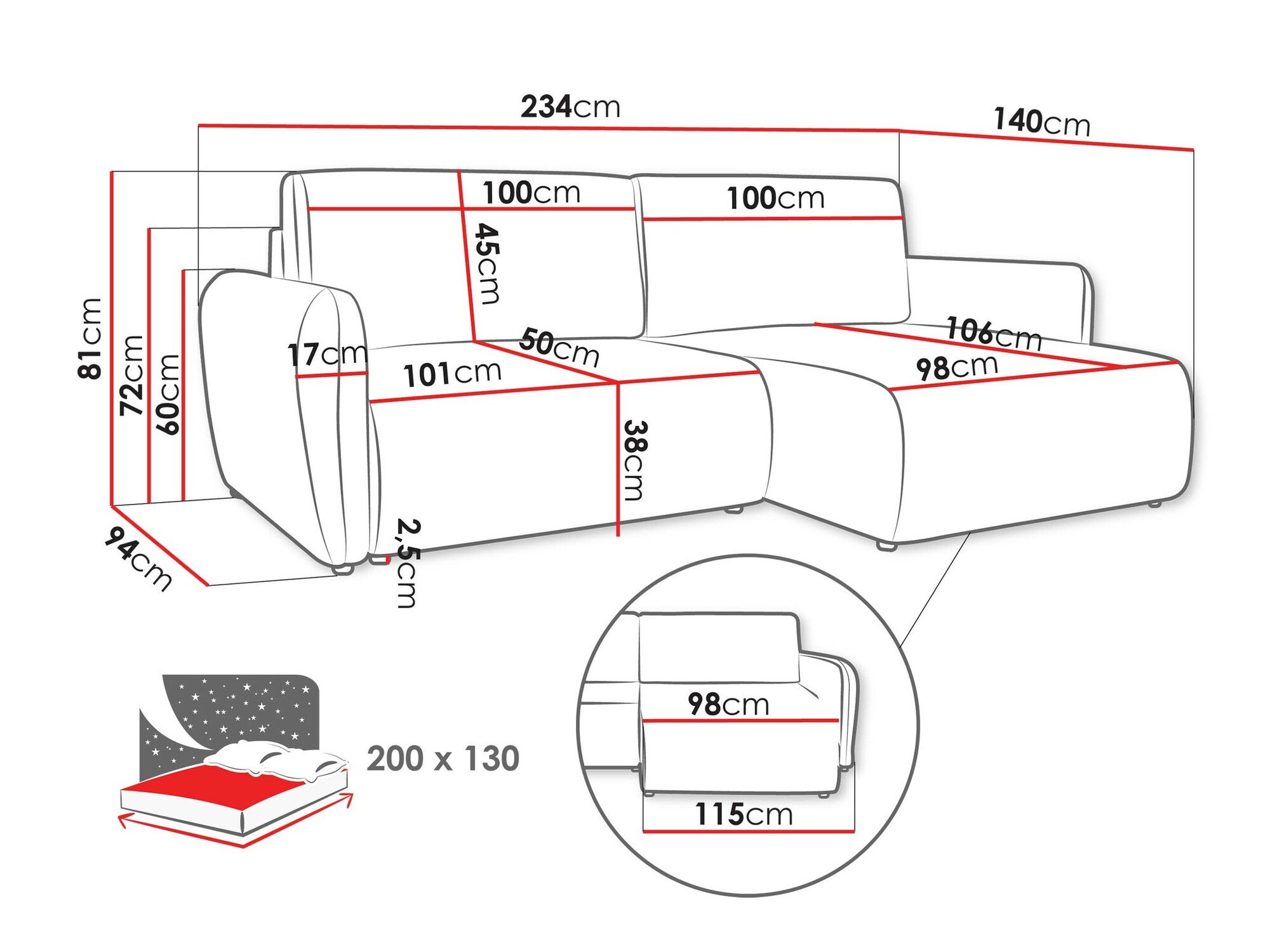 Dimensions de la boîte à literie: