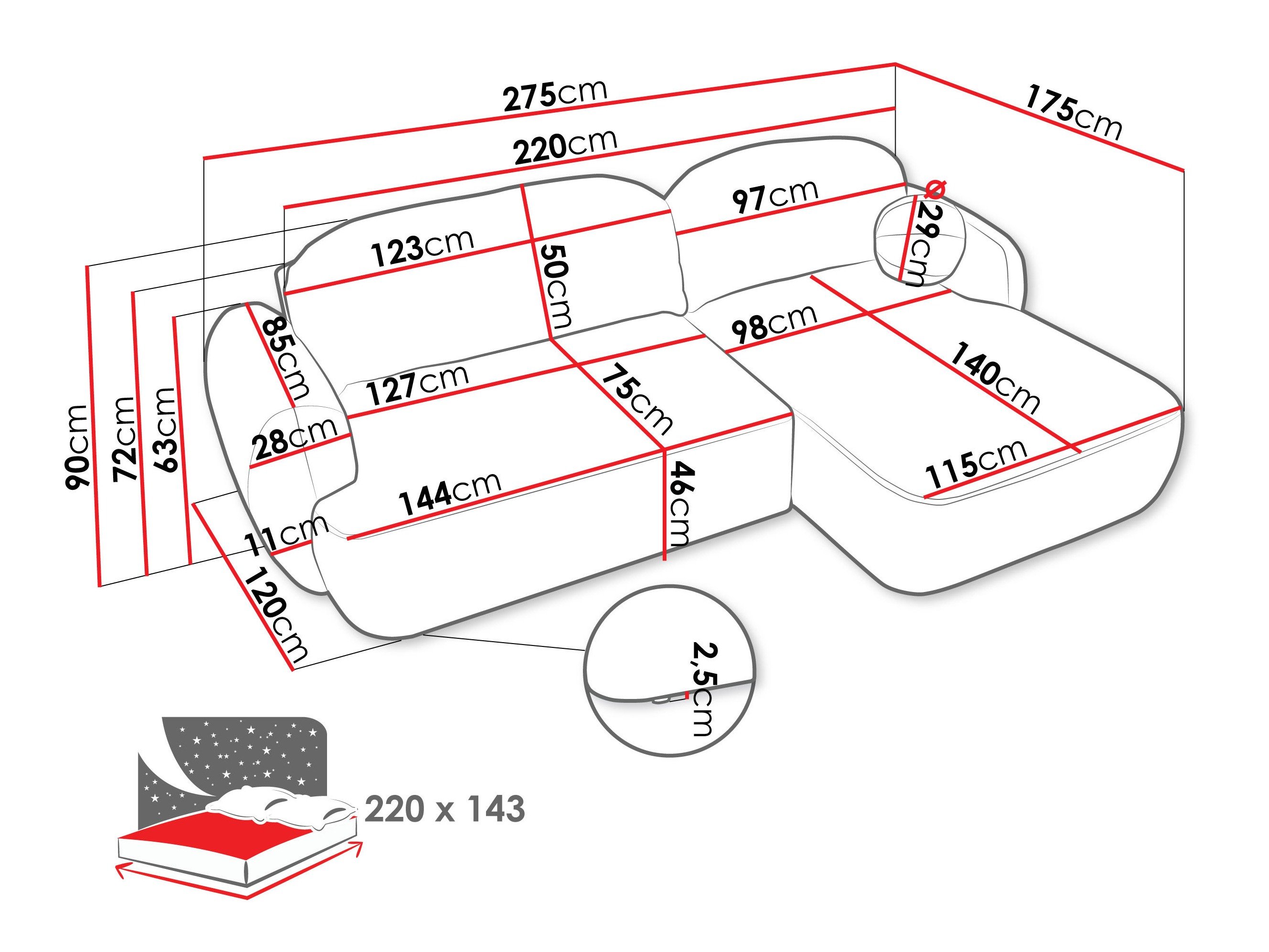 Lorsque vous êtes en face du canapé, le méridien de l'option gauche se trouve à votre gauche. L'option d'angle doit améliorer le passage dans la pièce et permettre le mouvement facile dans l'espace.