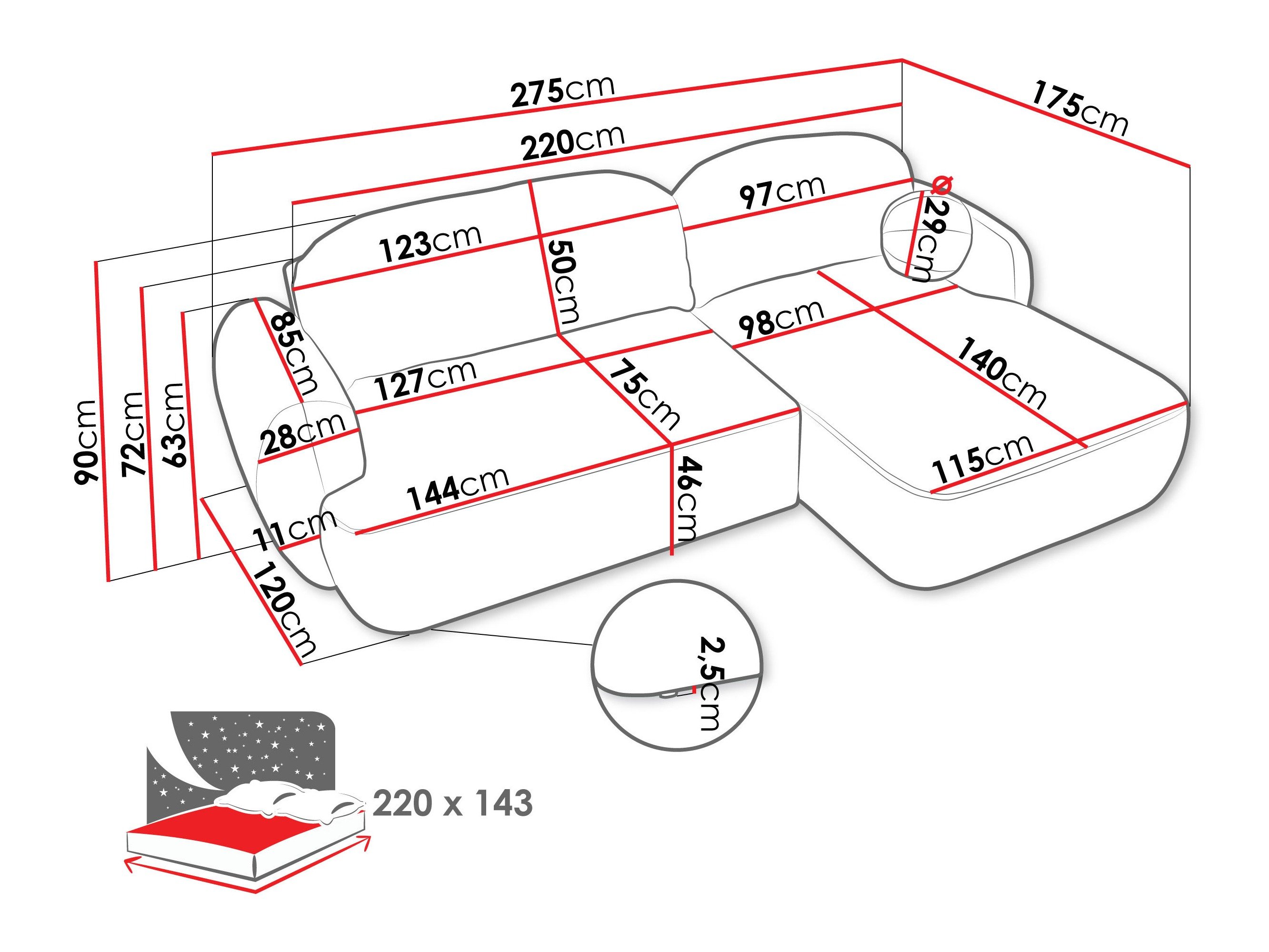 Lorsque vous êtes en face du canapé, le méridien de l'option gauche se trouve à votre gauche. L'option d'angle doit améliorer le passage dans la pièce et permettre le mouvement facile dans l'espace.