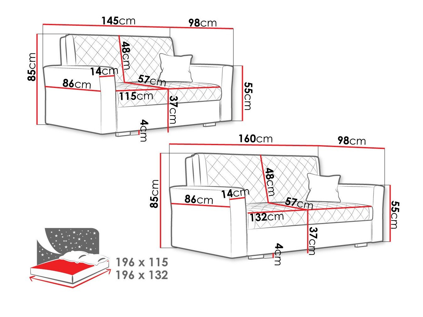 Dimensions du canapé 2 places: